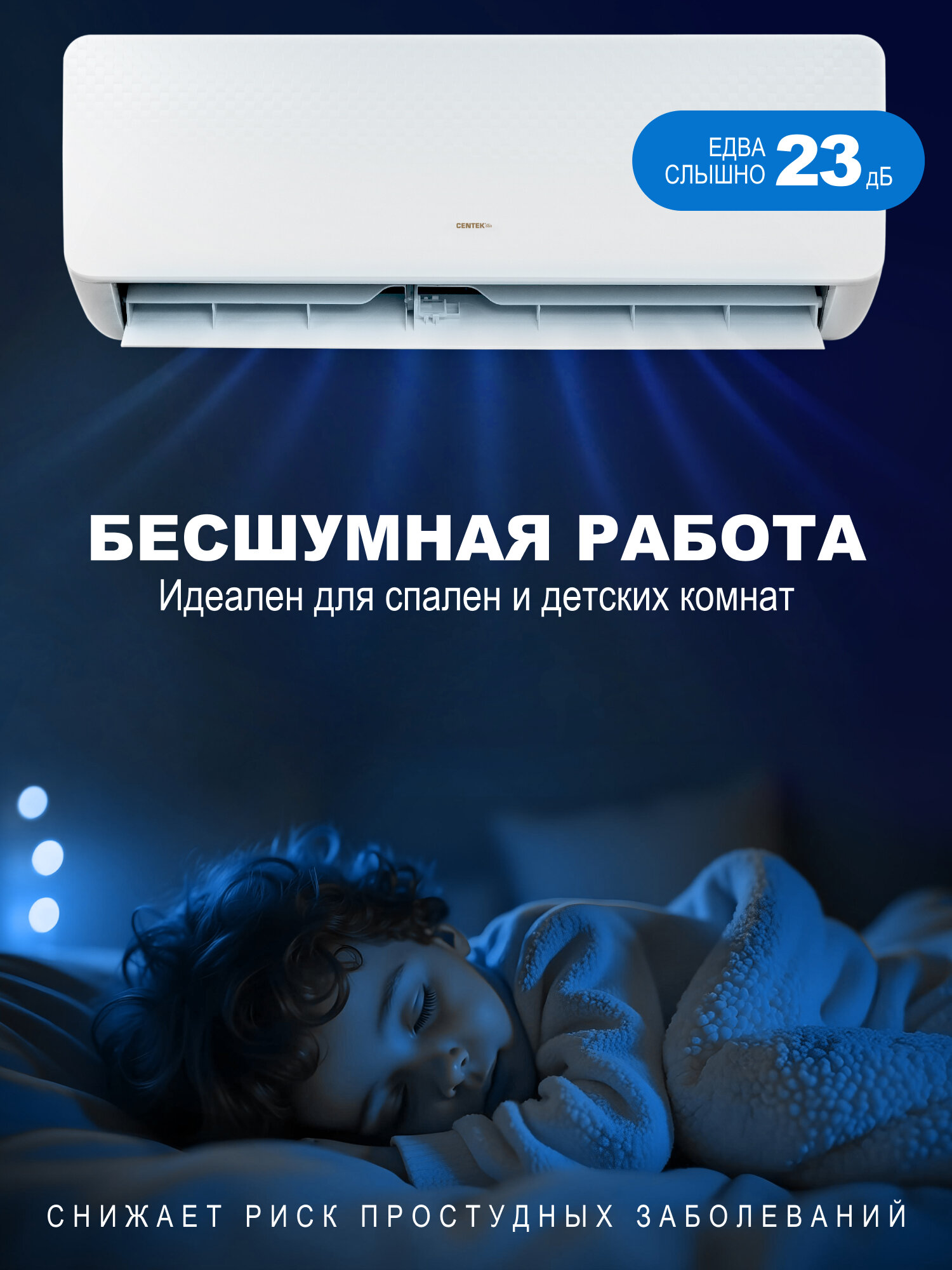 Сплит-система Centek CT-65C07 /24м2/ 2650Вт/скрытый LED дисплей/ EER-3.21/ Тихий до 23 дб/ компрессор GMCC интересное:
