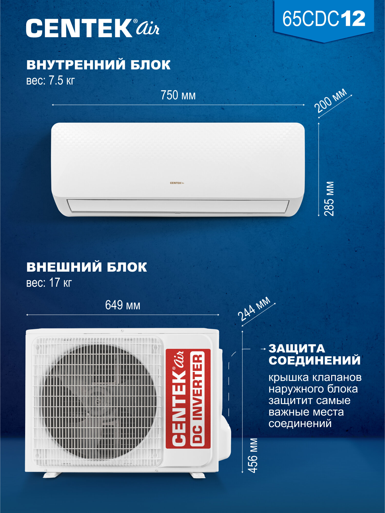 Ниже Вы можете прочитать отзывы на Сплит-система инверторная Centek CT-65CDC12 / 32м2/ Сверхтихий и Мощный/ 4D обдув/ А+/ компрессор GMCC, ознакомится с подробными характеристиками, посмотреть интересные обзоры и фотографии на Сплит-система инверторная Centek CT-65CDC12 / 32м2/ Сверхтихий и Мощный/ 4D обдув/ А+/ компрессор GMCC.