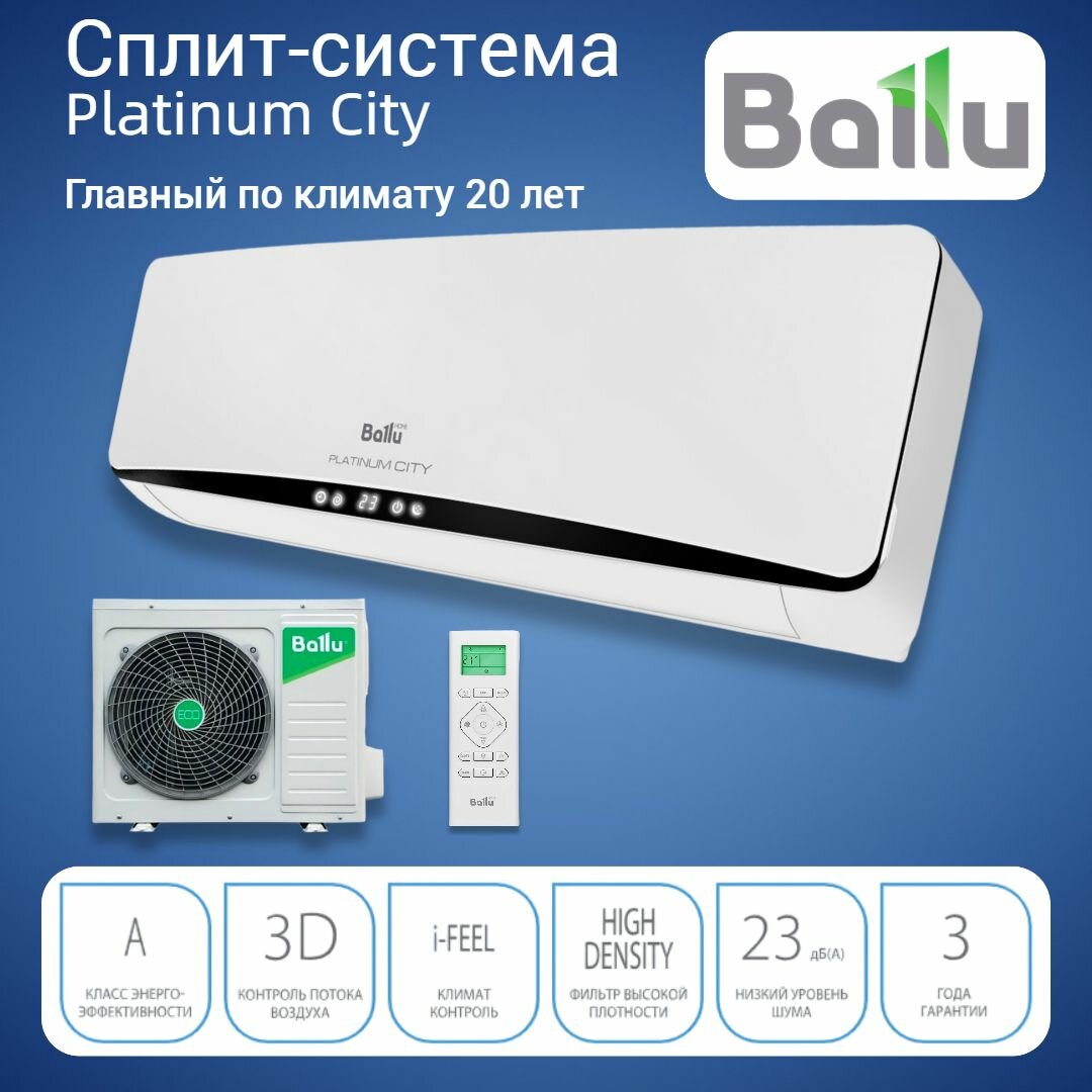 Сплит-система Ballu PLATINUM City BSEP-12HN8, настенная, 12000 BTU, площадь до 35м², 3D поток интересное: