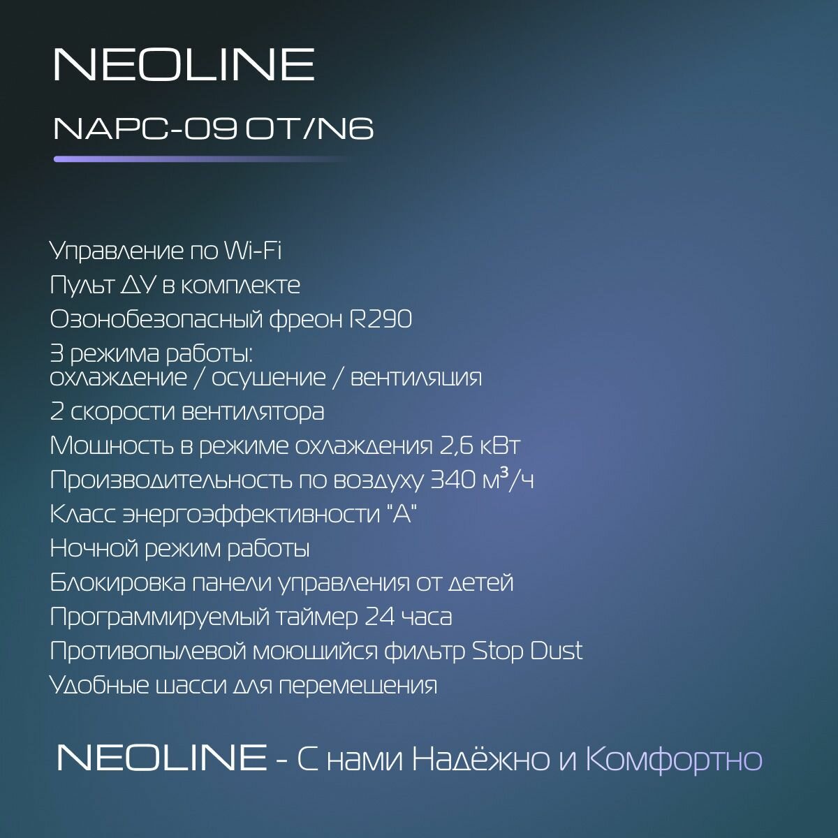 Кондиционер мобильный NEOLINE AirConnect NAPC-09 OT/N6 интересное: