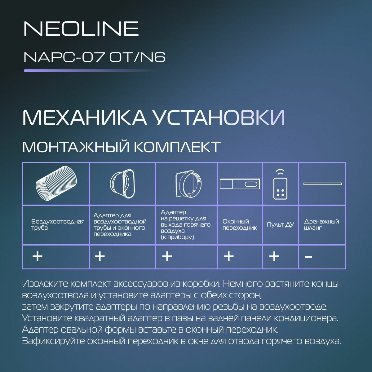 Кондиционер мобильный NEOLINE AirConnect NAPC-07 OT/N6 интересное: