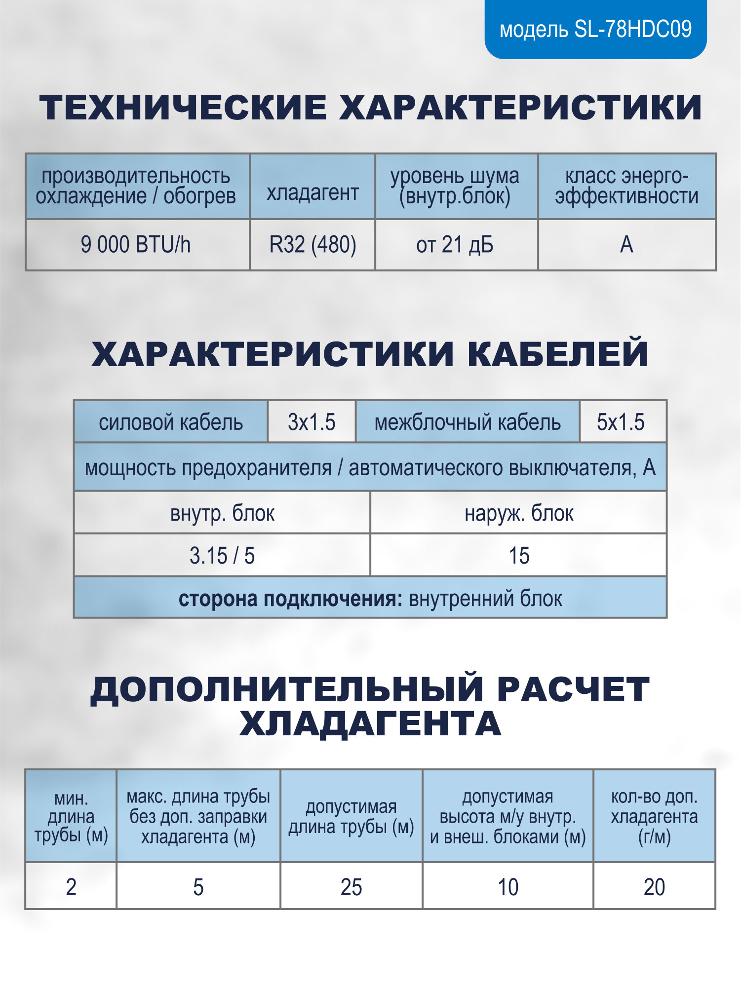 | Вес внутреннего блока | 7.3 кг |