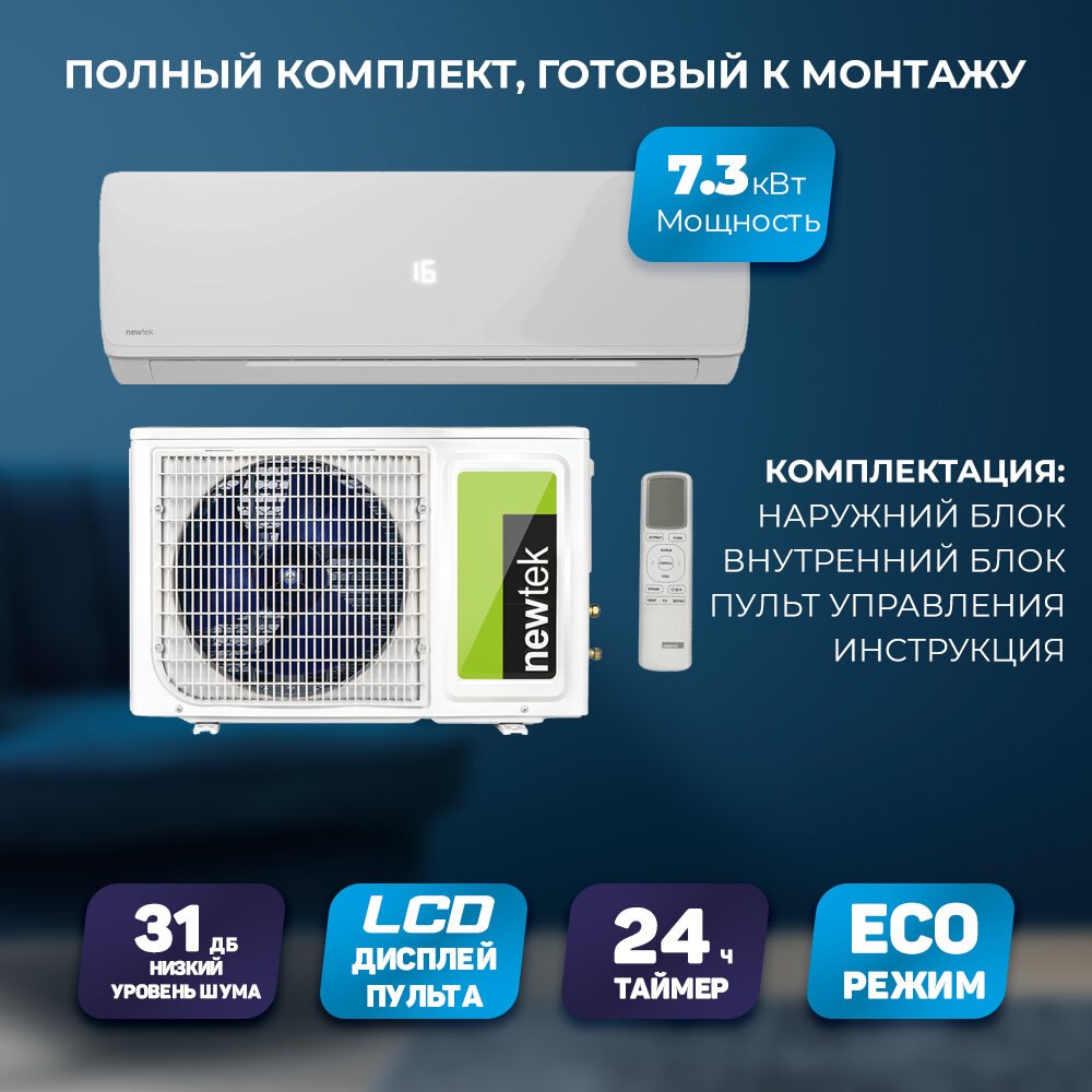 Сплит система, Кондиционер Newtek NT-65CHA24 для площади до 70 м2 интересное: