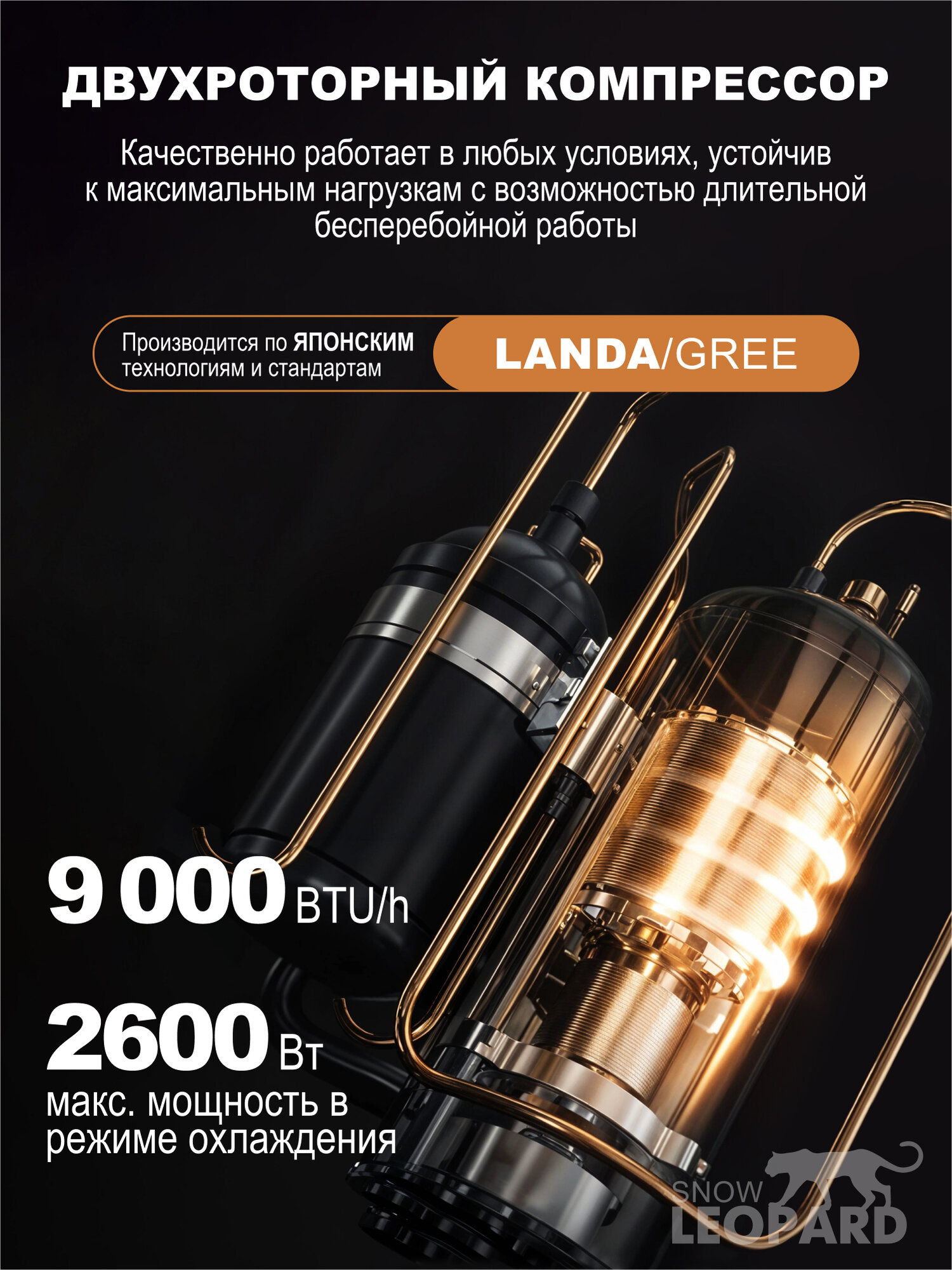 Купить Сплит-система Snow Leopard SL-77H09/ 28м2/ 2600Вт/ мощный и тихий/ 4D обдув/ компрессор GREE