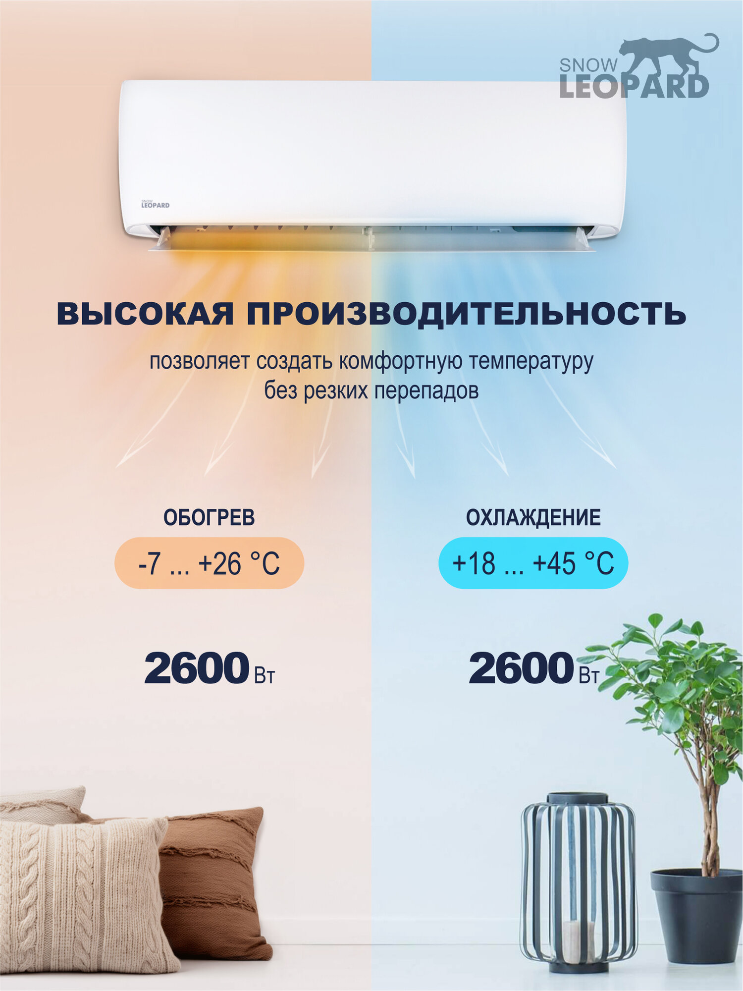Сплит-система Snow Leopard SL-88SDC07: 25м2/ Инвертор/ Сверхтихий/ 4D обдув/ I-FEEL/ Двухроторный компрессор GMCC