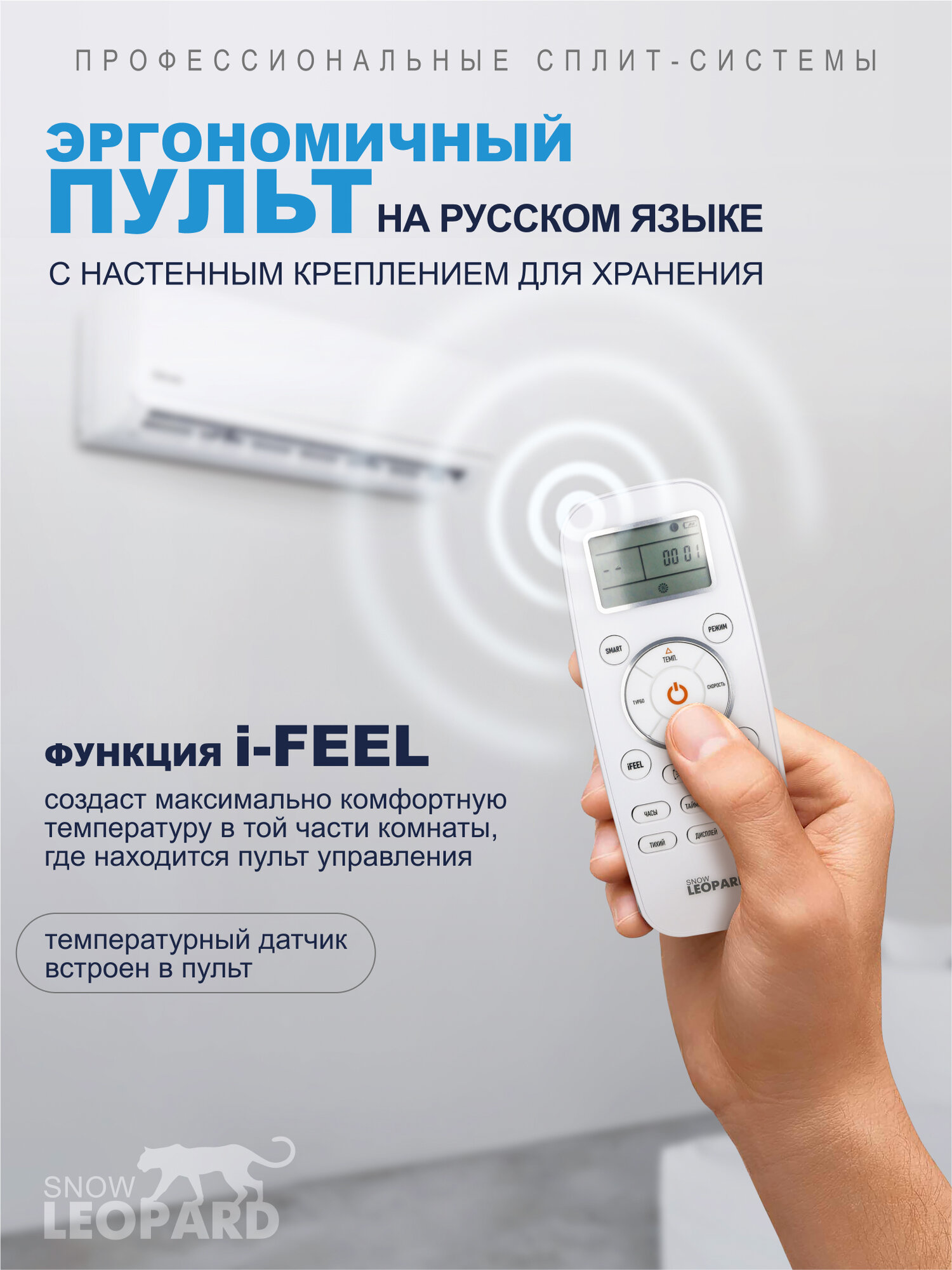 Сплит-система Snow Leopard SL-88QDC24: 74м2/ Инвертор/ Сверхэффективный A++/ Фактурная панель/ 4D обдув/ I-FEEL/ SANYO