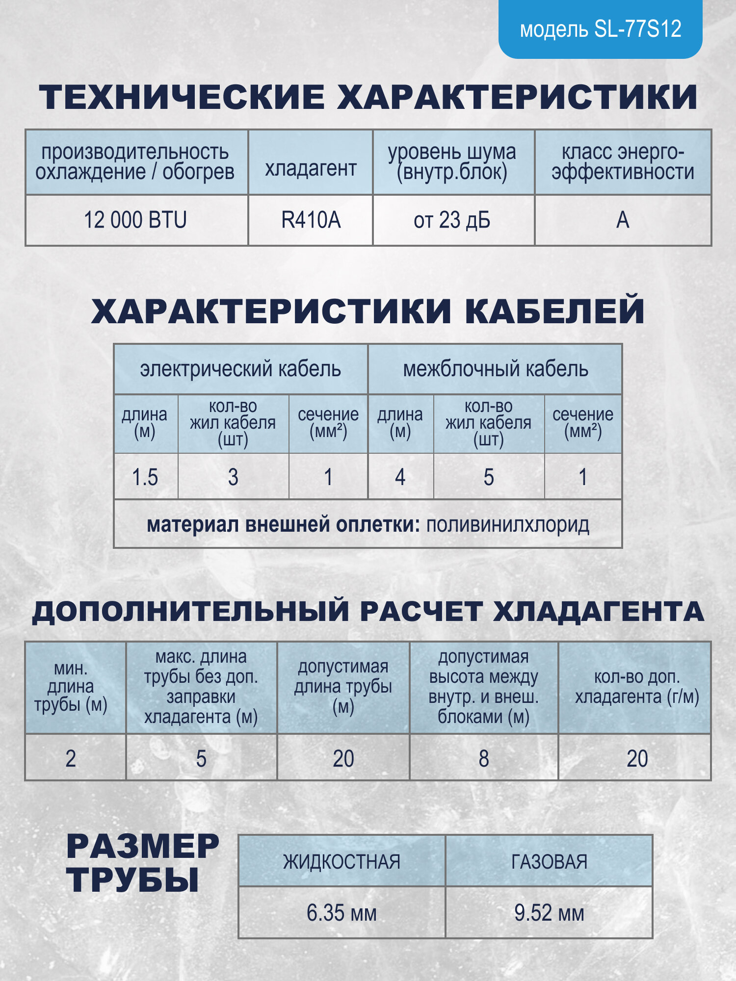 | Охлаждающая способность | 9000 BTU/ч |