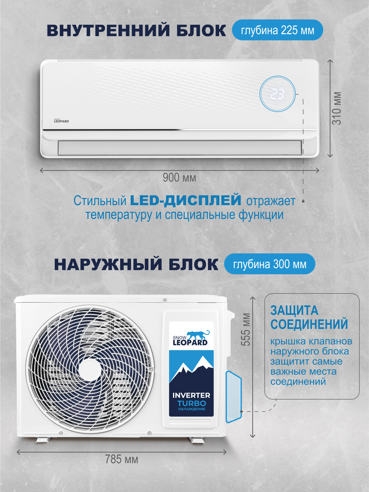 Сплит-система Snow Leopard SL-88QDC07: 25м2/ Инвертор/ Сверхэффективный A++/ Фактурная панель/ 4D обдув/ I-FEEL/ GMCC