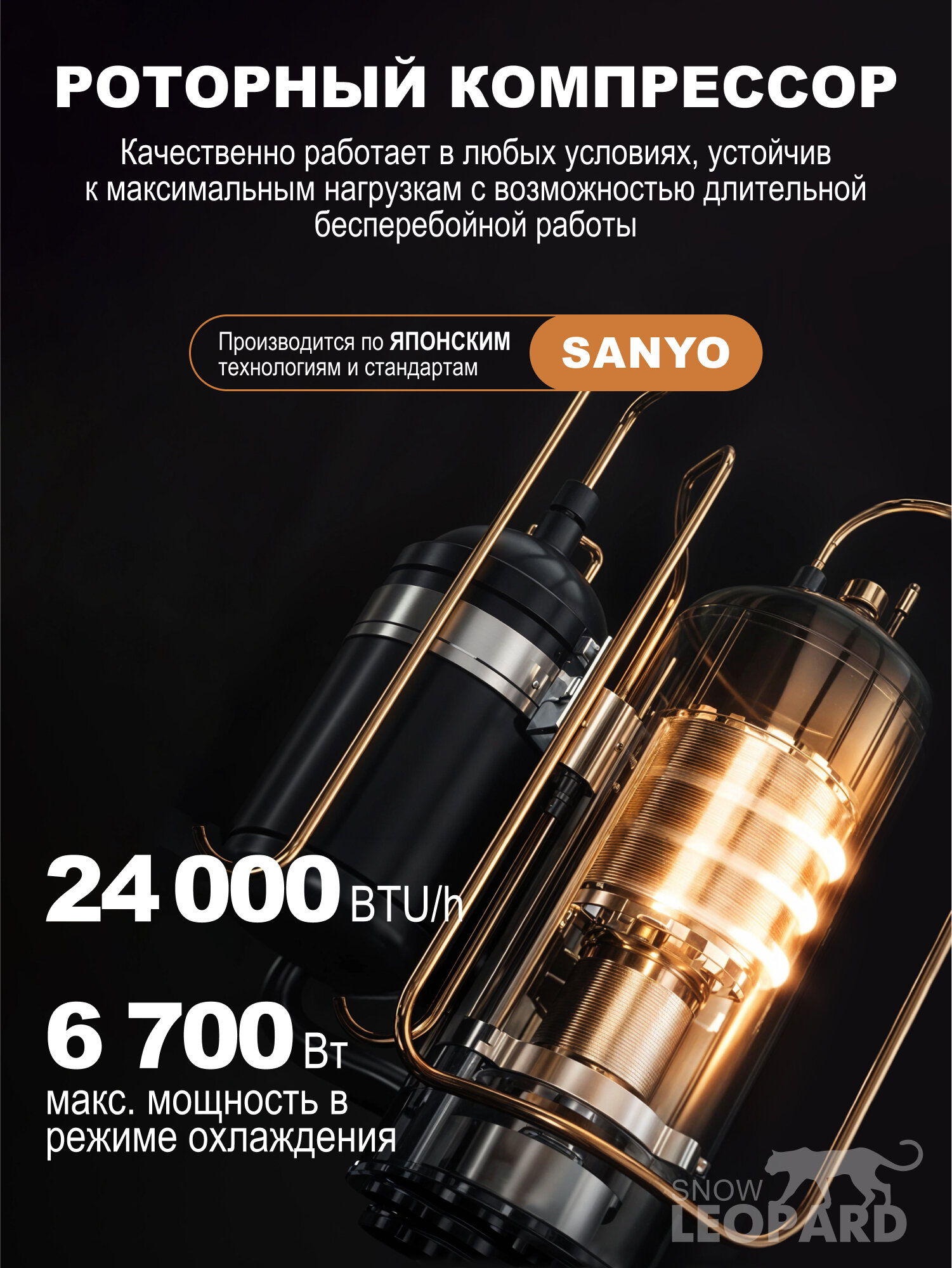 Сплит-система Snow Leopard SL-77H24/ 74м2/ 7030Вт/ мощный и тихий/ 4D обдув/ компрессор GMCC