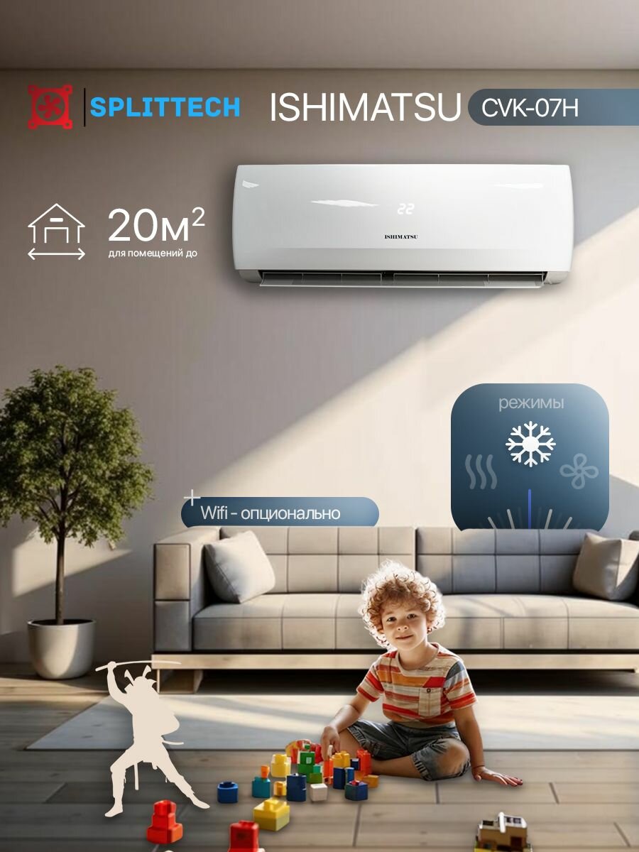 Кондиционер на 20 м2 ISHIMATSU Тихий Мощный CVK-07H Golden fin покрытие теплообменника интересное: