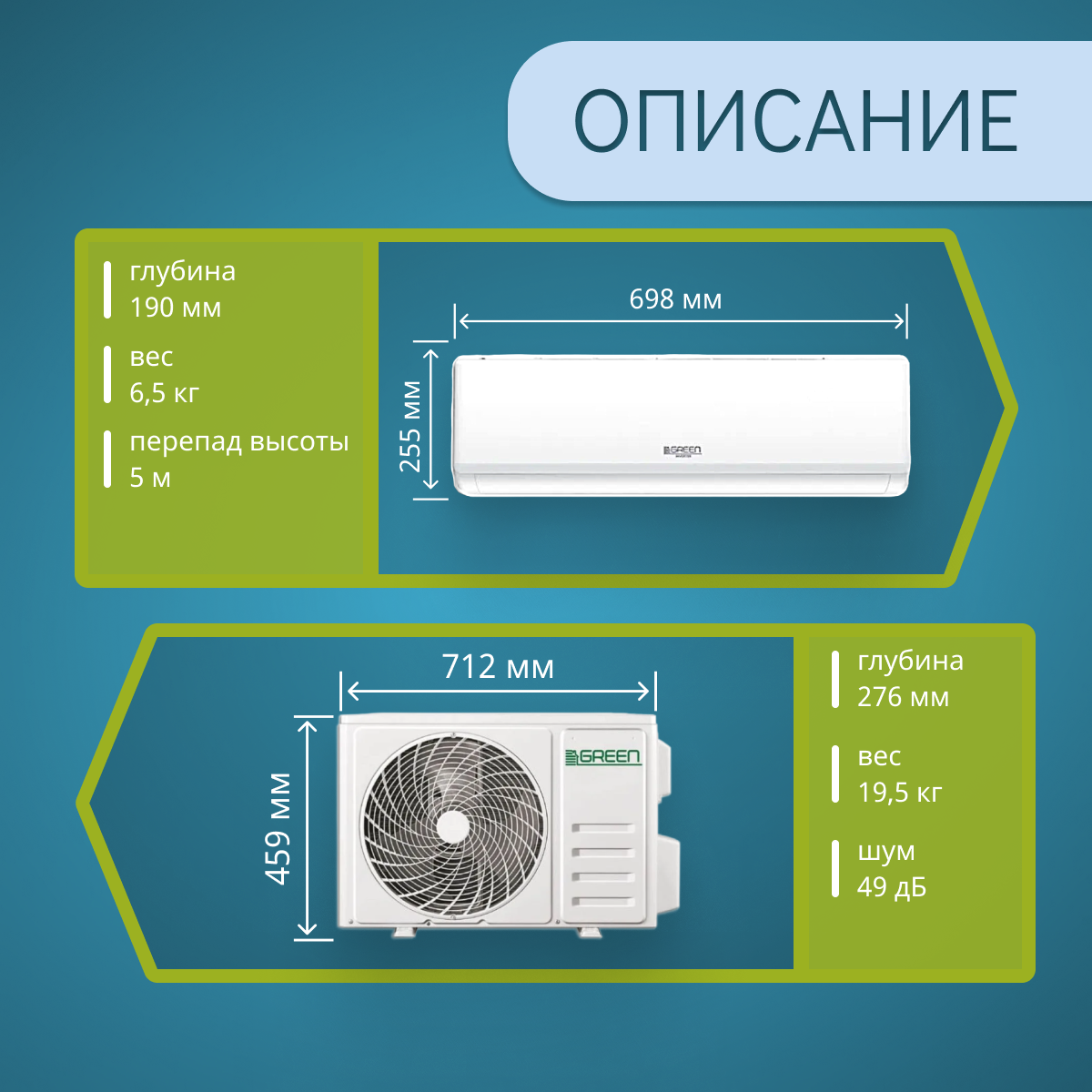 Настенная сплит-система / кондиционер / комплект GREEN TSI/TSO-09 HRSY2 кондиционер для помещения до 25 кв. м белый интересное: