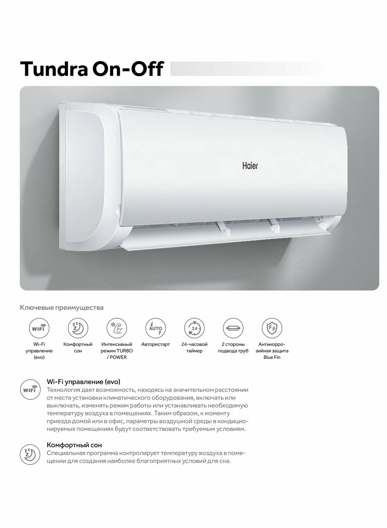 Сплит-система HAIER TUNDRA ON/OFF WiFi HSU-07HTT03/R3 интересное:
