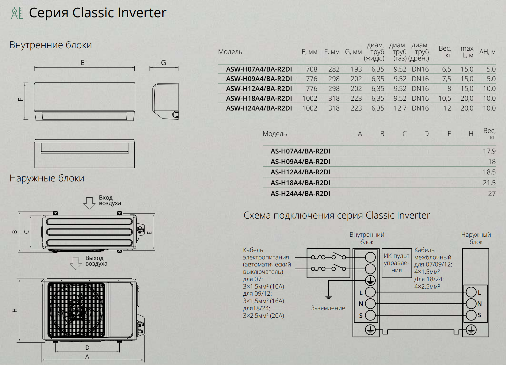 Сплит-система AUX ASW-H07A4/BA-R2DI Classic Inverter, комплект, инвертор, белый, до 22 м