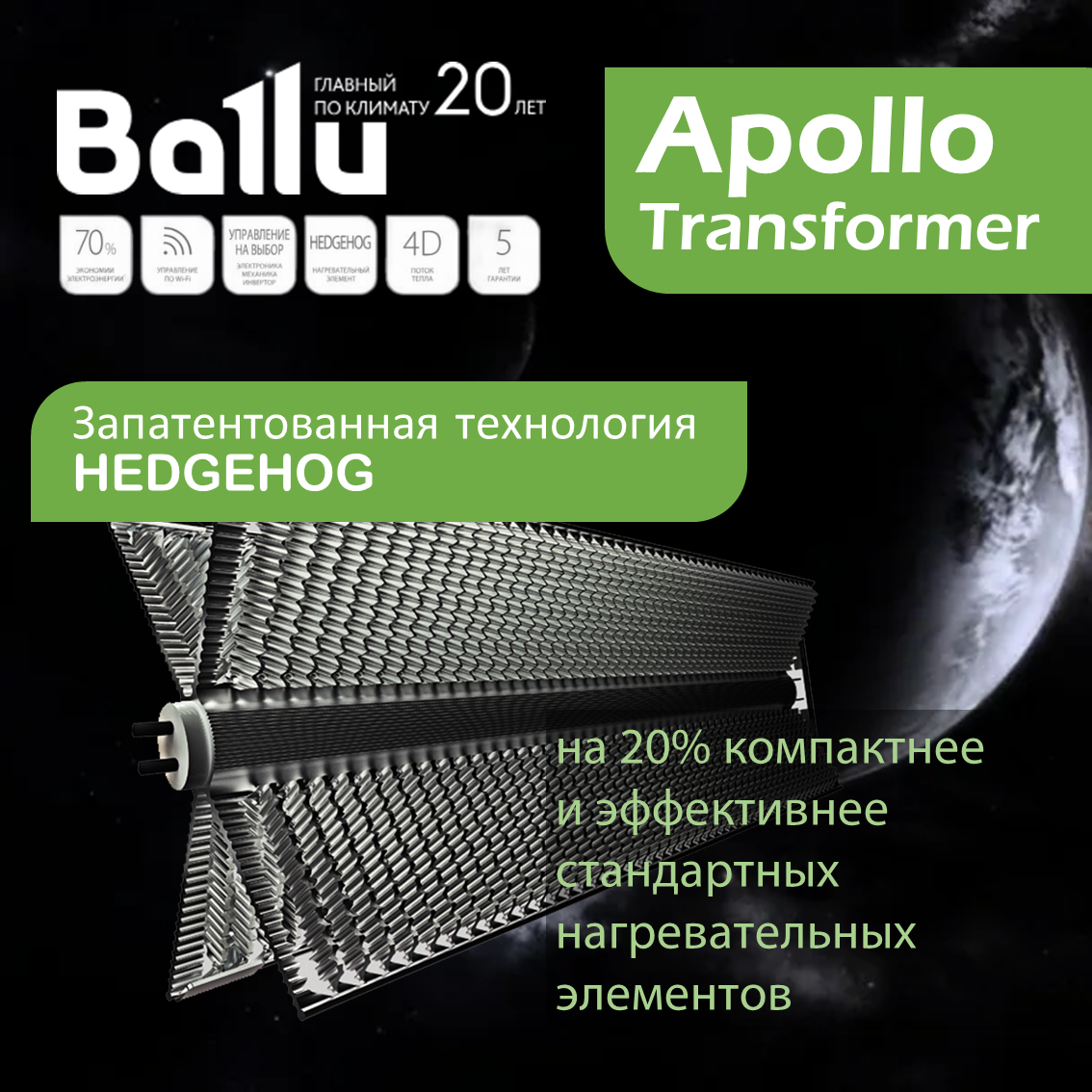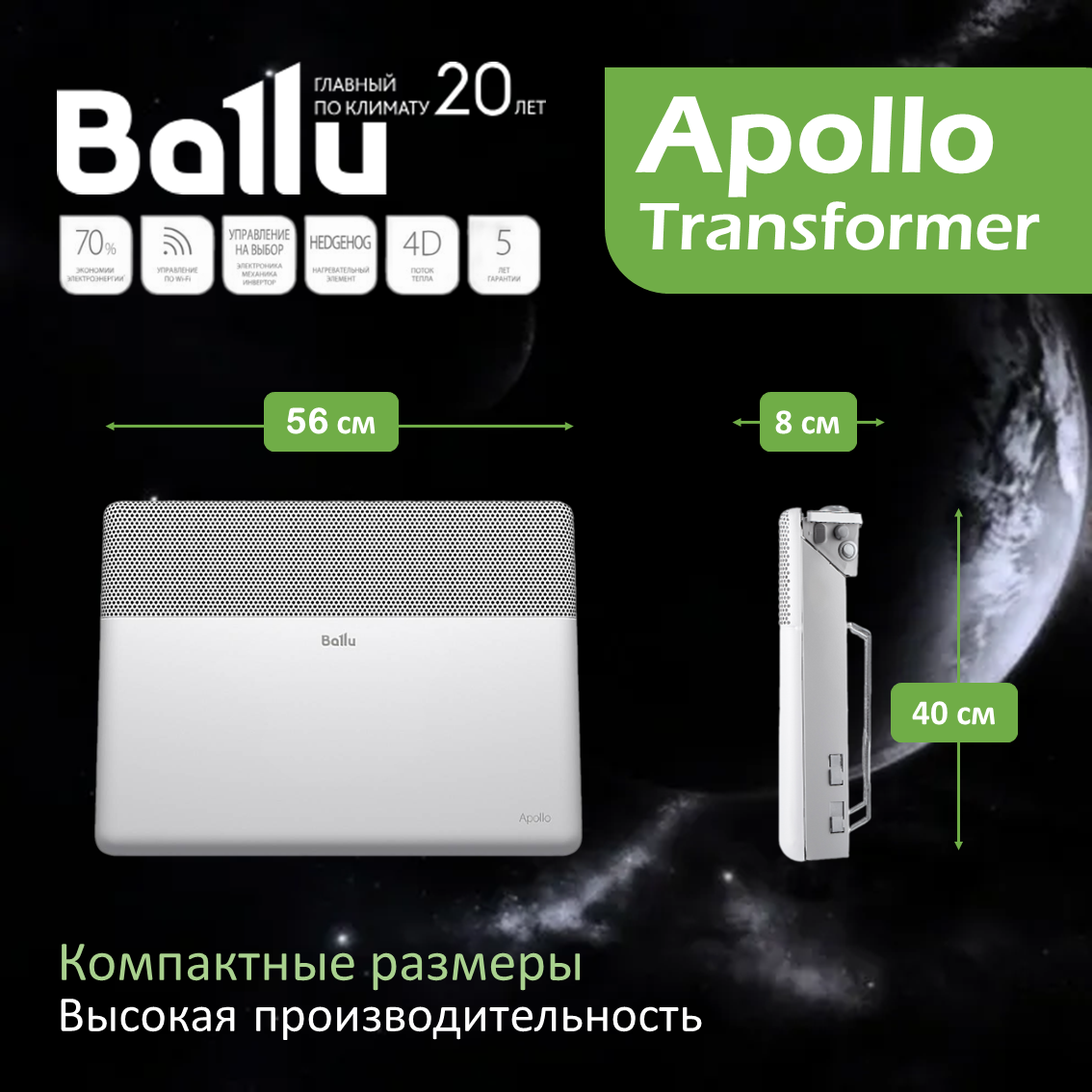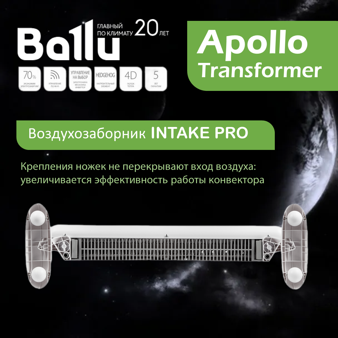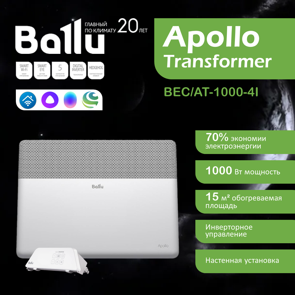 Инверторный конвектор Ballu BEC/AT-1000-4I Apollo Transformer c WiFi интересное: