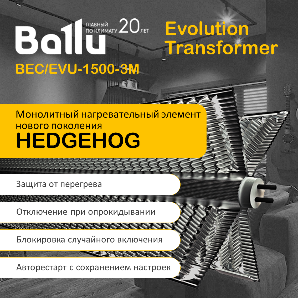 СохранитьКонвектор Ballu BEC/EVU-1500-3M Evolution Transformer с механическим управлением интересное: