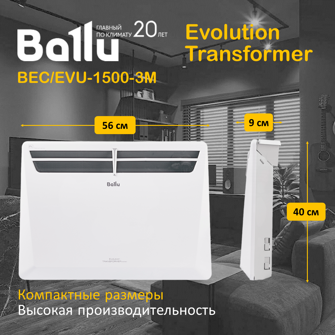 Конвектор Ballu BEC/EVU-2000-3M CS Evolution Transformer с механическим управлением и ножками