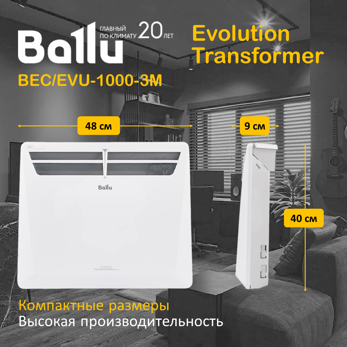 Конвектор Комплект Ballu Evolution Transformer с блоком управления и шасси BEC/EVU-1500-EVU-3M (механический)