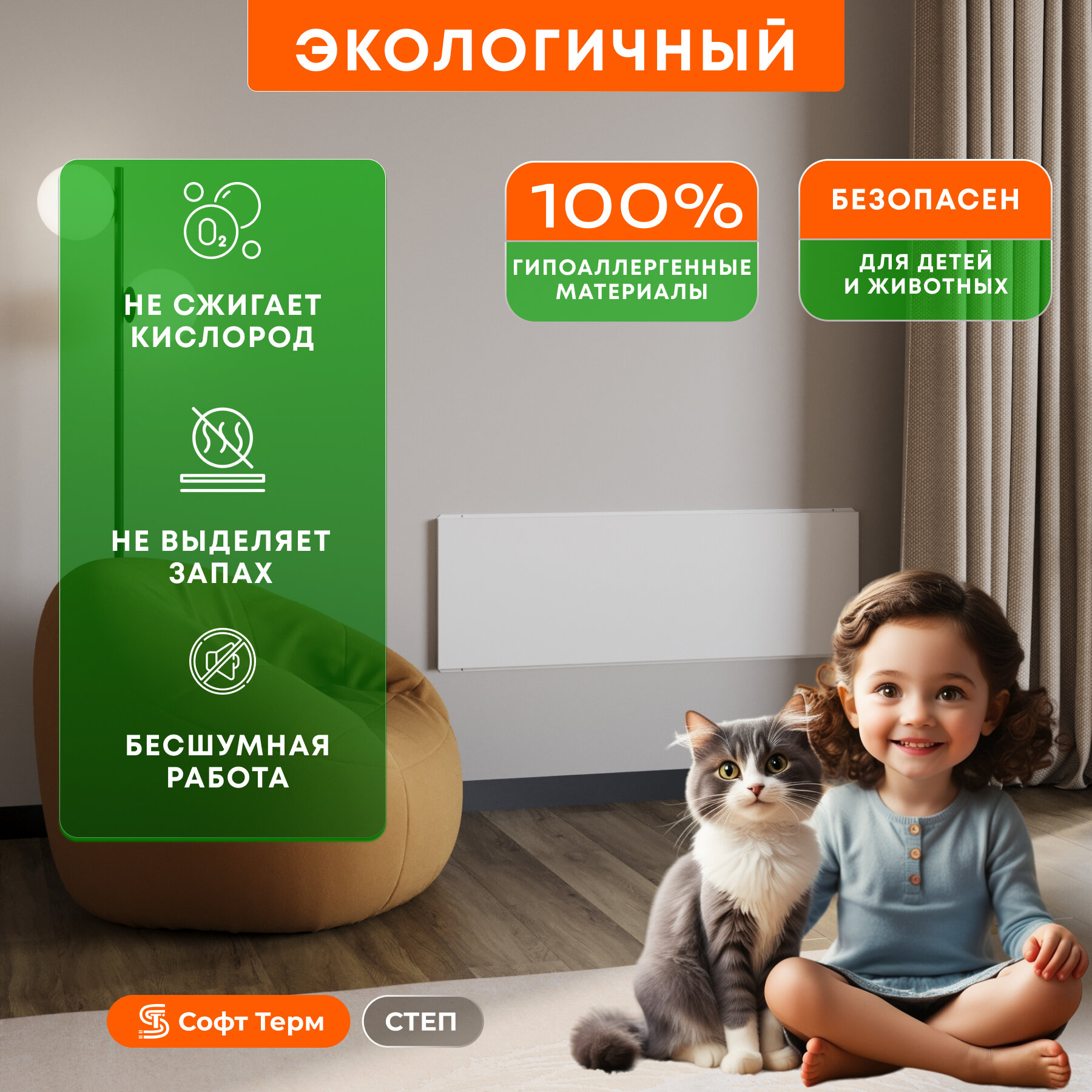 Инфракрасный обогреватель электрический настенный степ 800 Вт 1,8х0,59