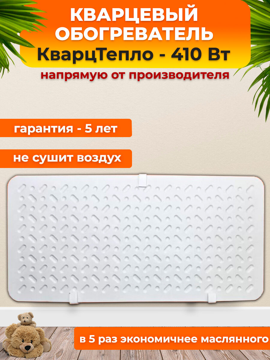 Кварцевый обогреватель "КварцТепло" - 410 Вт с настенным креплением и теплоэкраном, белый. Термометр в подарок. интересное: