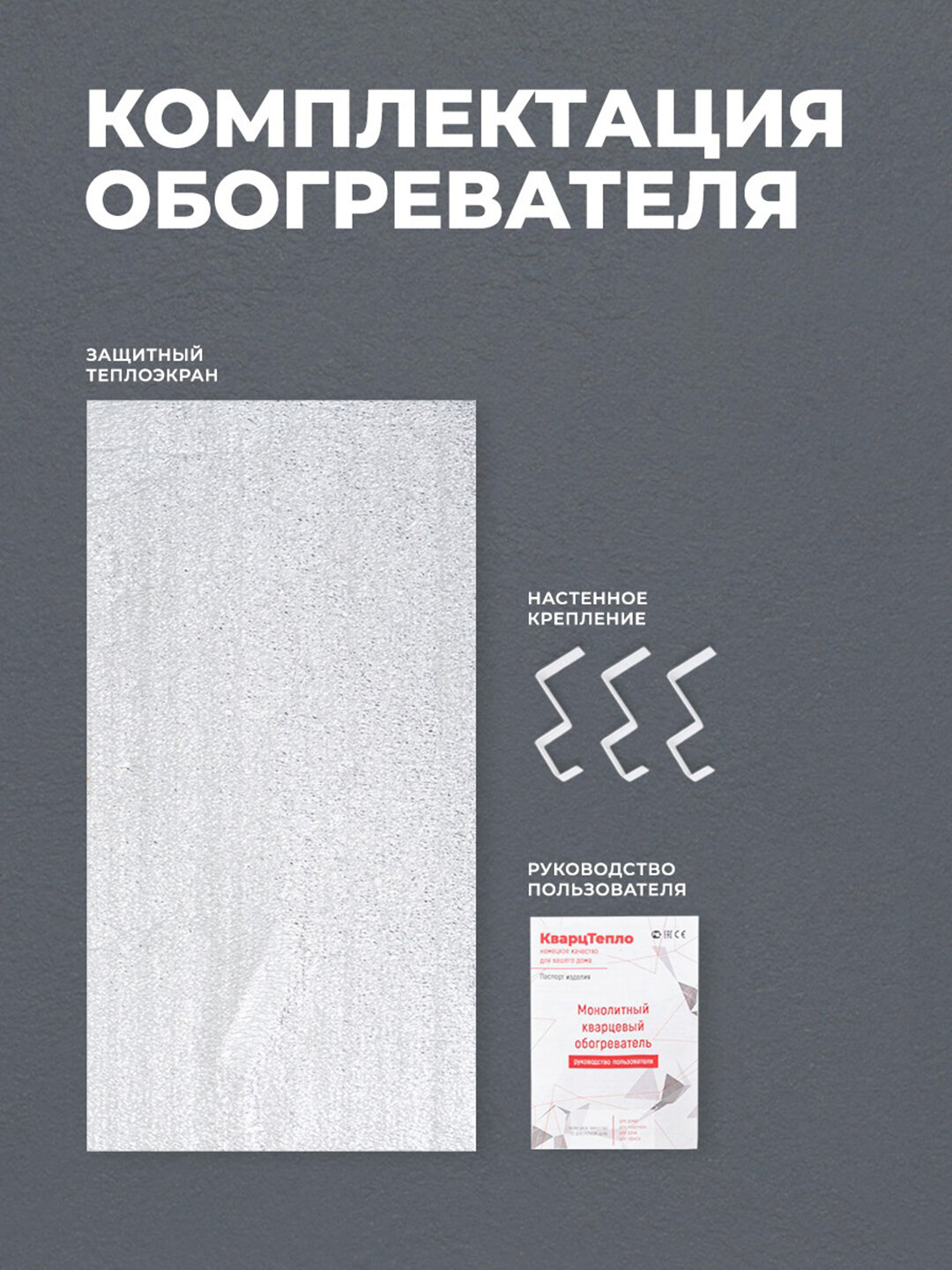 | Подробная комплектация | Обогреватель, крепление к стене, теплоэкран отражающий, паспорт изделия |