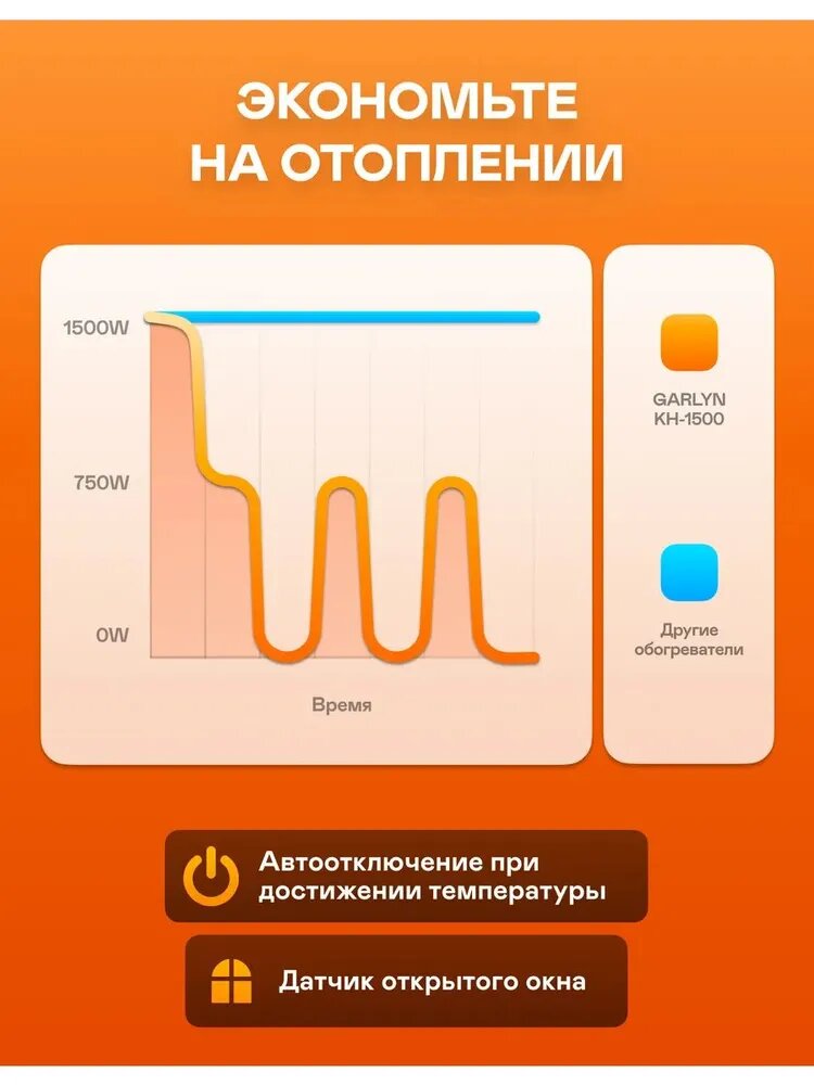 Обогреватель конвекторный KH-1500. 6 автоматических режимов. Мощность 1500 Вт. интересное:
