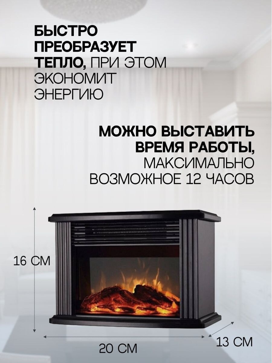 | Подробная комплектация | мини камин обогреватель для дома; кабель питания 220В; пульт дистанционного управления; картонная коробка |