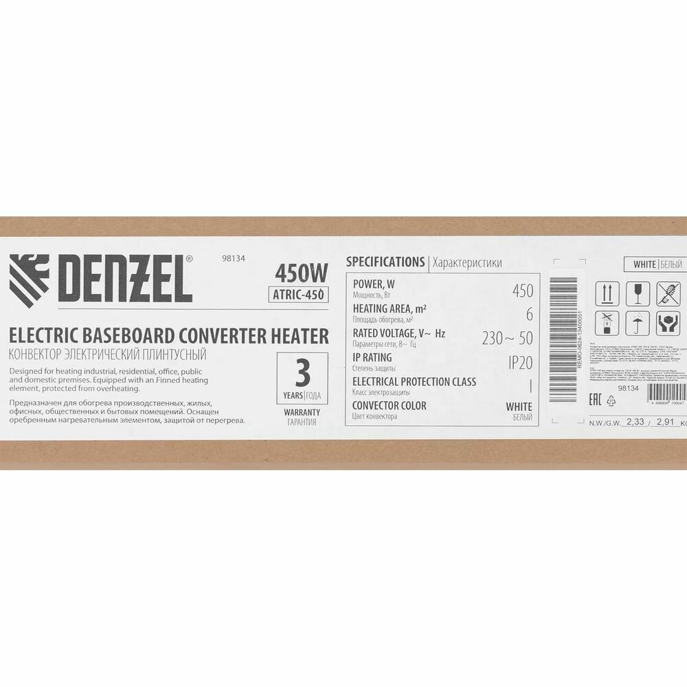 Конвектор электрический плинтусный Denzel ATRIC-450, 230 В, 450 Вт, ТЭН, 98134 интересное: