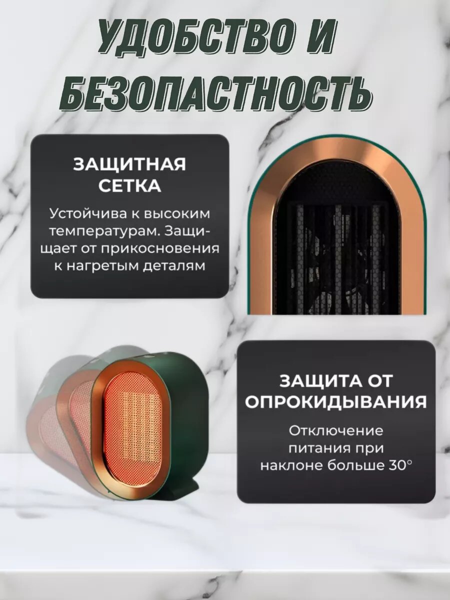 Портативный тепловентилятор Uyut Маркет PTC, 1200Вт, от сети, 2 режима работы интересное: