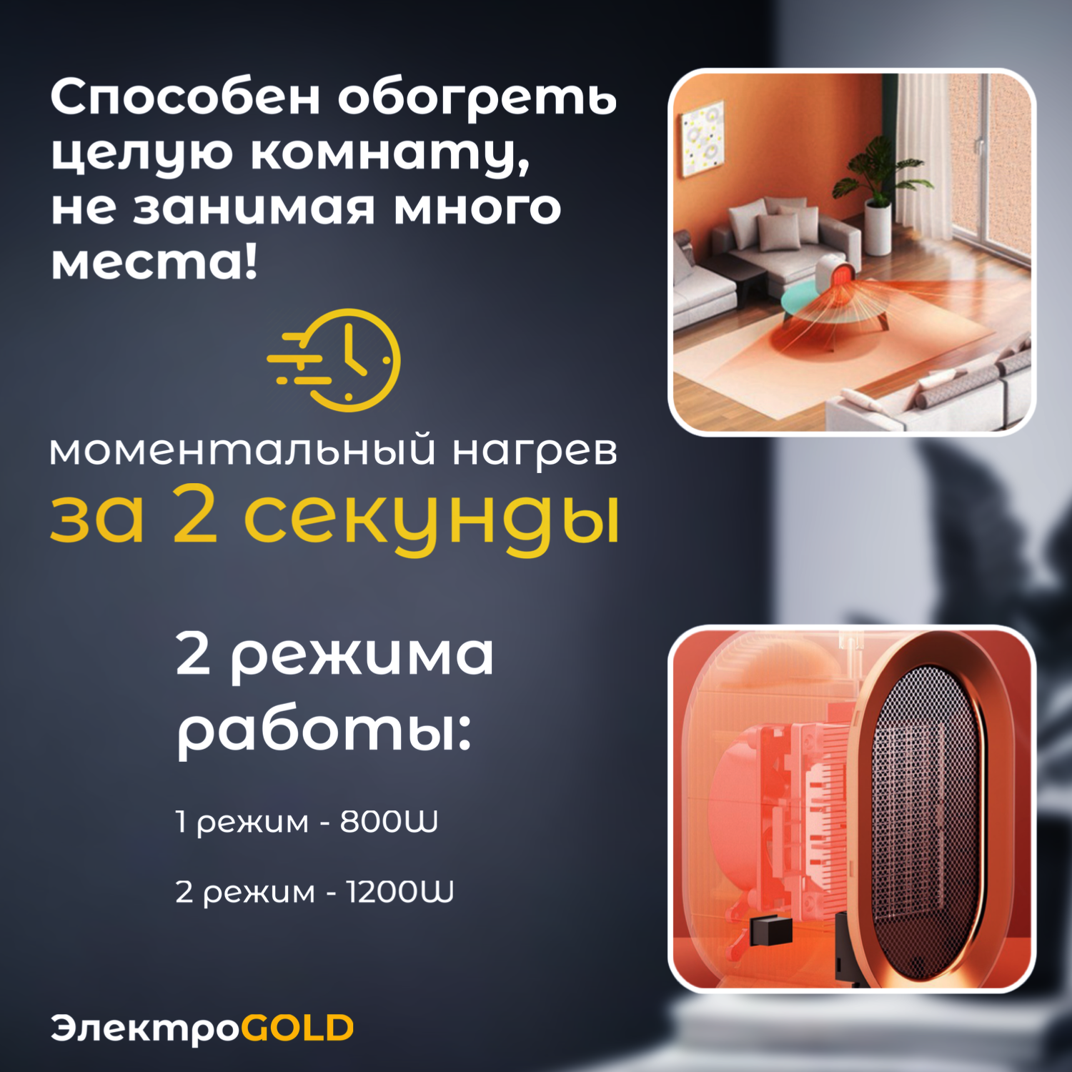 Обогреватель для дома поворотный 180° тепловентилятор 1200Вт интересное: