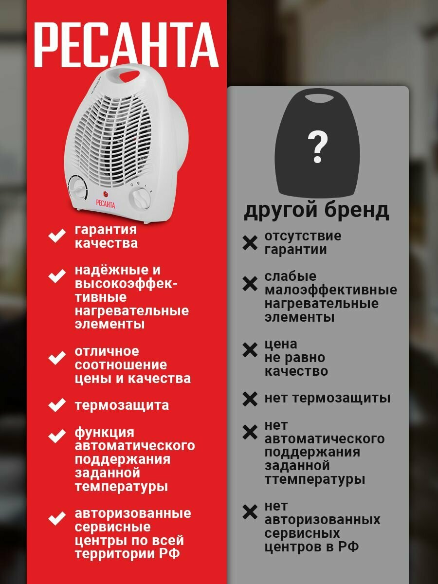 Тепловентилятор Ресанта ТВС-2021МР, 20 м2, механический, 2000 Вт интересное: