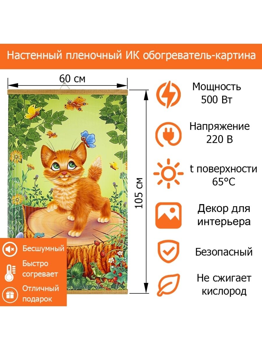 СохранитьИнтерьерная картина-обогреватель / Обогреватель настенный "Котенок" 60х105 см интересное: