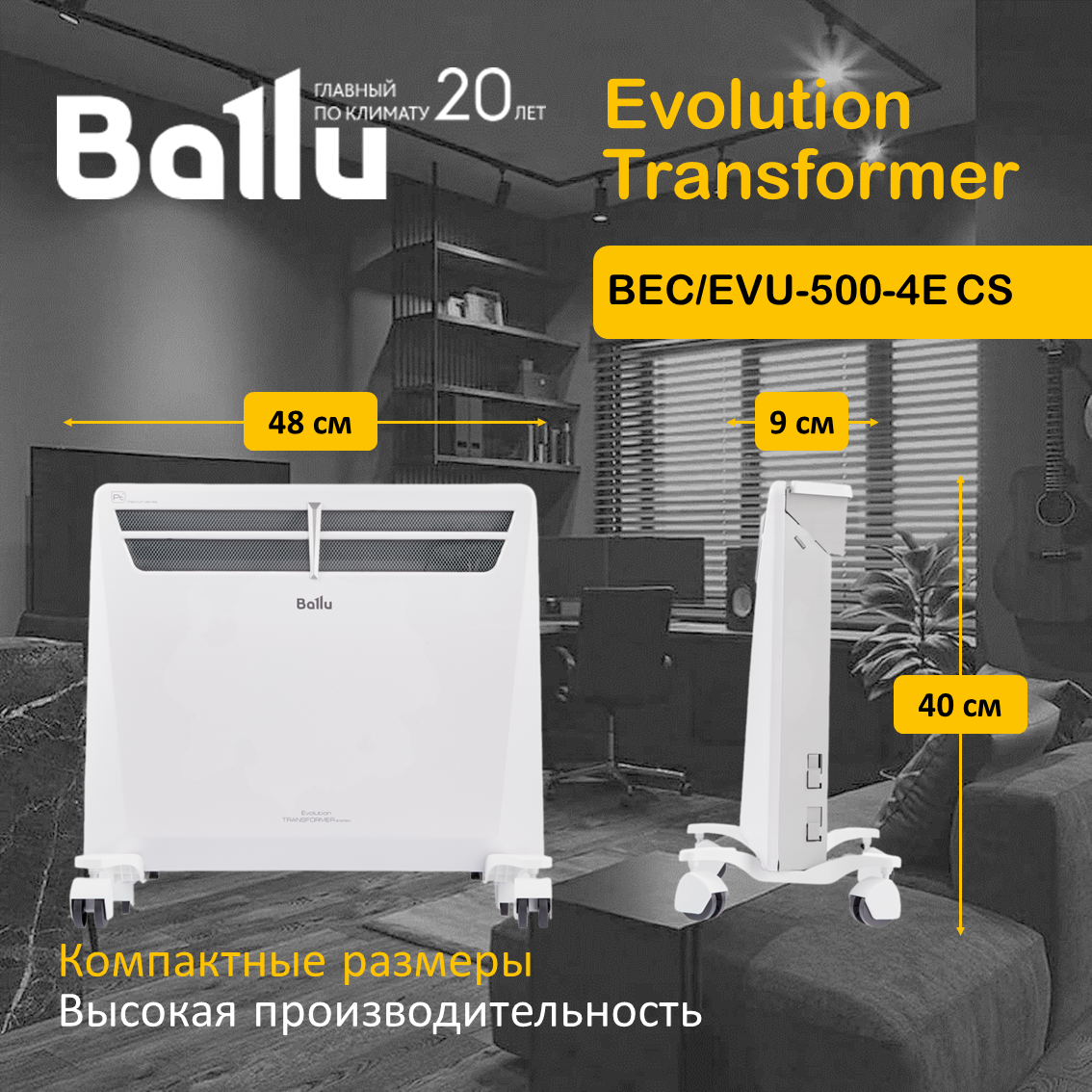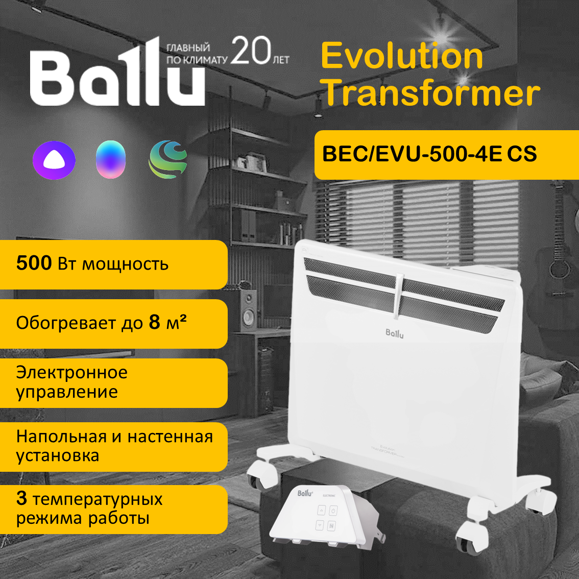 Конвектор Ballu BEC/EVU-500-4E CS Evolution Transformer с электронным управлением, ножками и WiFi интересное: