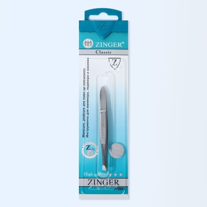 ZINGER Пинцет скошенный, узкий, 9 см, на блистере, цвет серебристый, B-158-S-SH