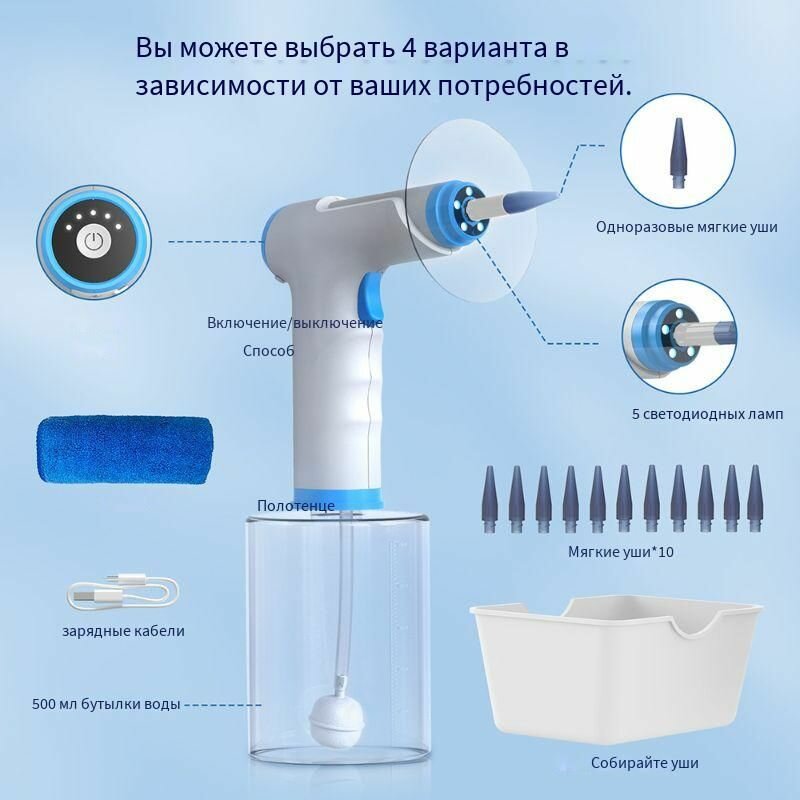 Инструмент для отоларингологии 4 режима, удаляет ушную серу, бороздки слухового прохода, очищает ушную раковину интересное: