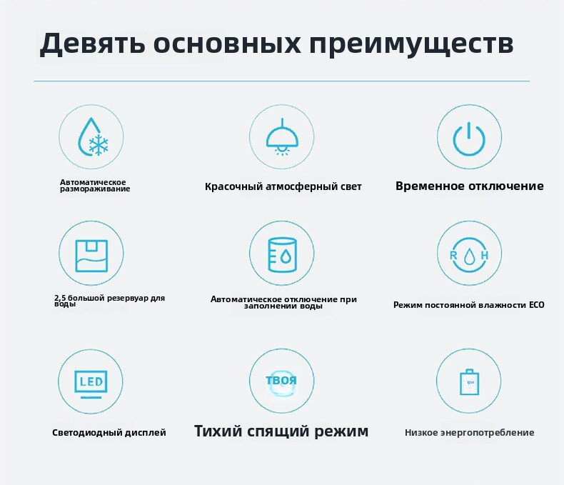 | Индикация | заданного уровня влажности / режима работы / текущего уровня влажности / температуры |