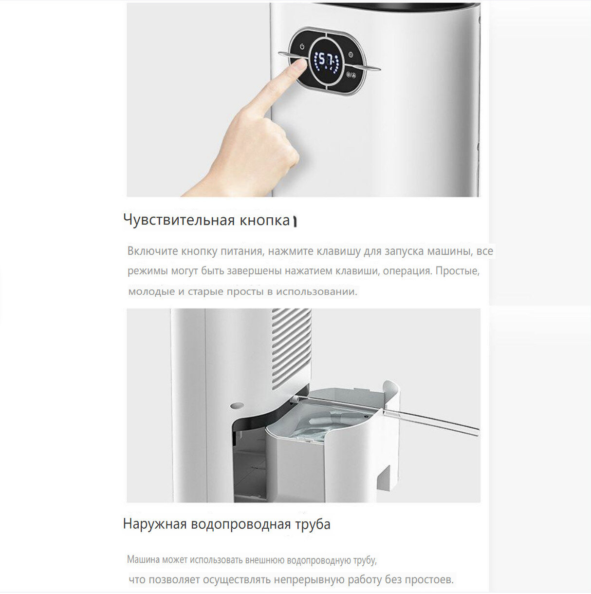 | Комплектация | Осушитель воздуха, русский адаптер, практичный внешний шланг для воды, инструкция по эксплуатации |