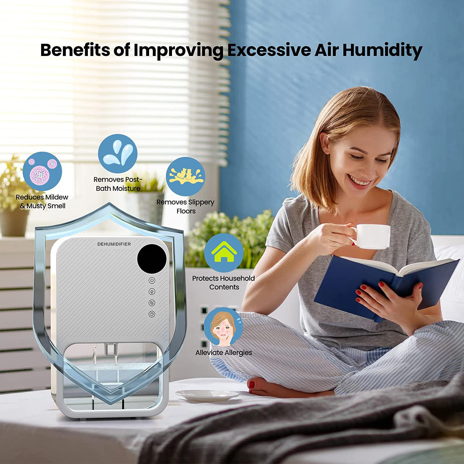 Осушитель воздуха, бытовой, бесшумный, белый, для спальни, подвала