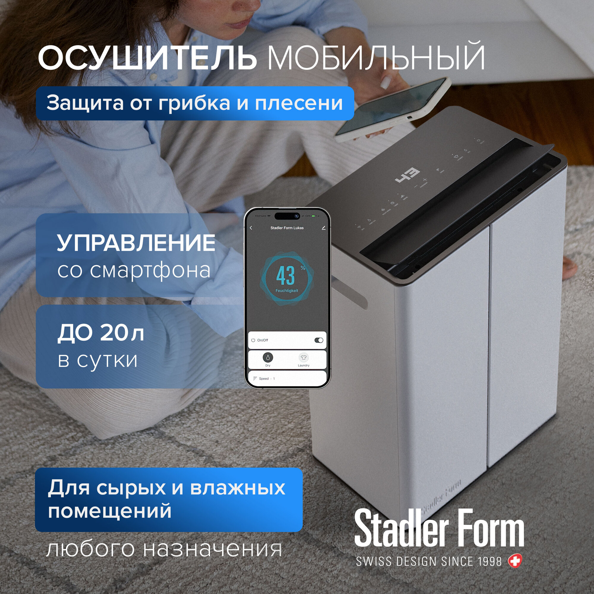 Осушитель воздуха Stadler Form Lukas, L-031E, с умным домом и управлением через смартфон, белый интересное: