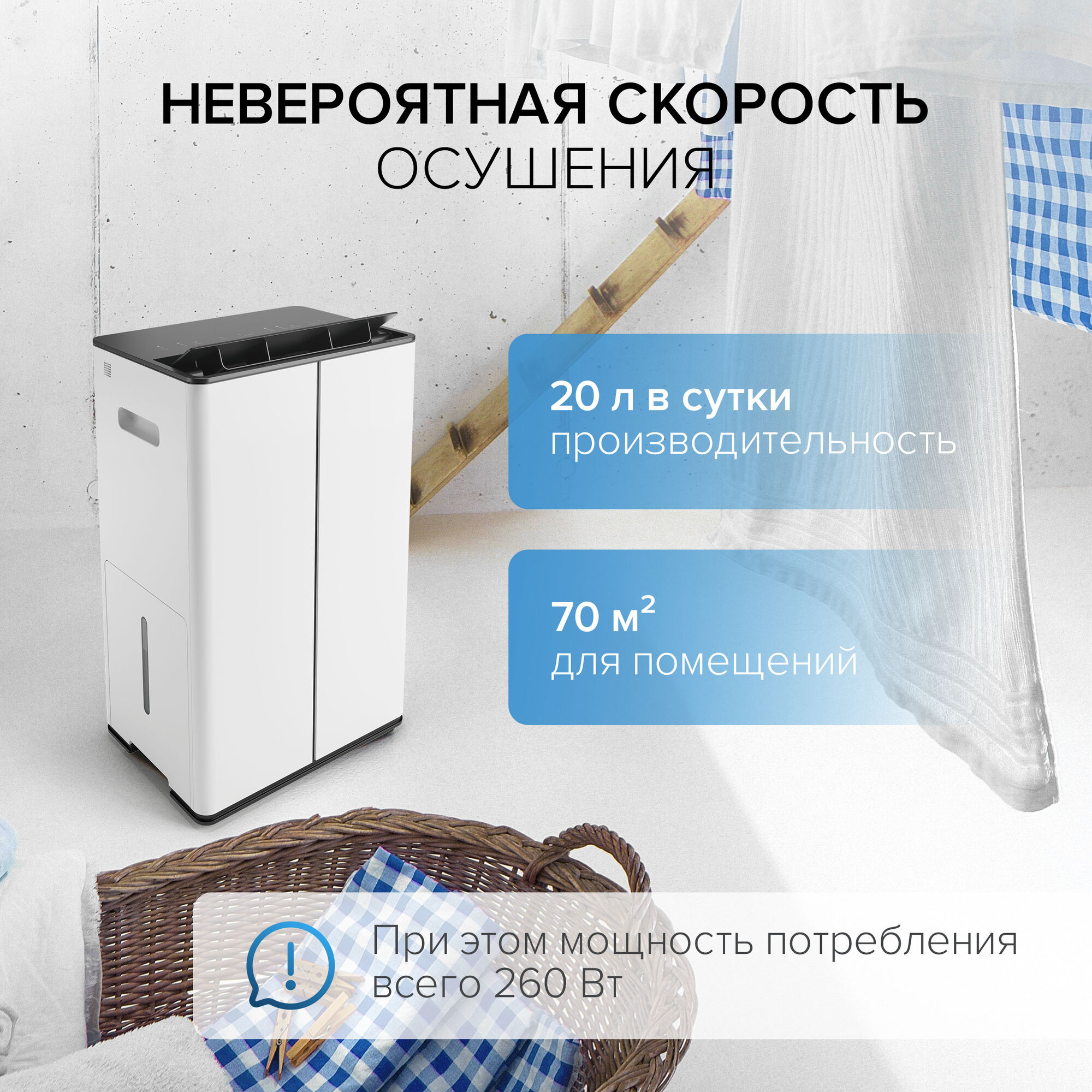 | Особенности | встроенный гигрометр / встроенный гигростат / датчик утечки воды / дисплей / колёса / ручка для переноски / сенсорное управление |