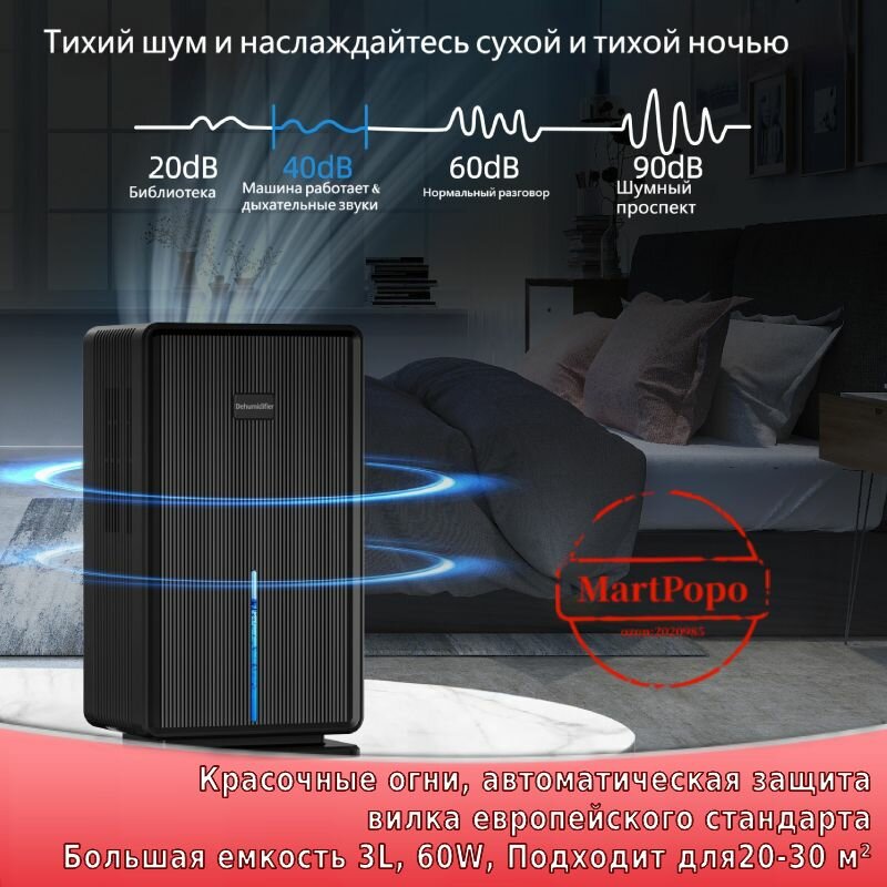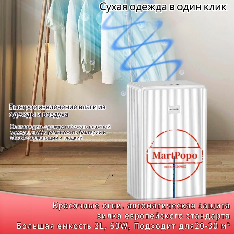 Осушитель воздуха бытовой, 3L, 60W, Подходит для 20-30 м интересное: