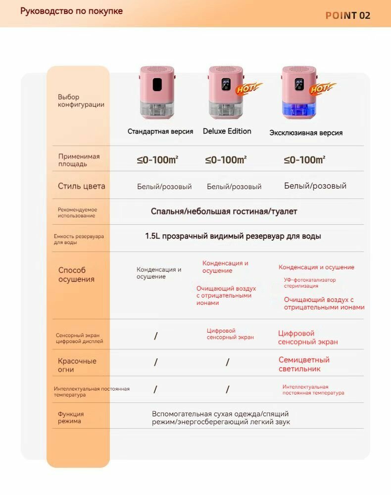 Бытовой розовый небольшой осушитель воздуха с цифровым дисплеем Extreme Edition интересное: