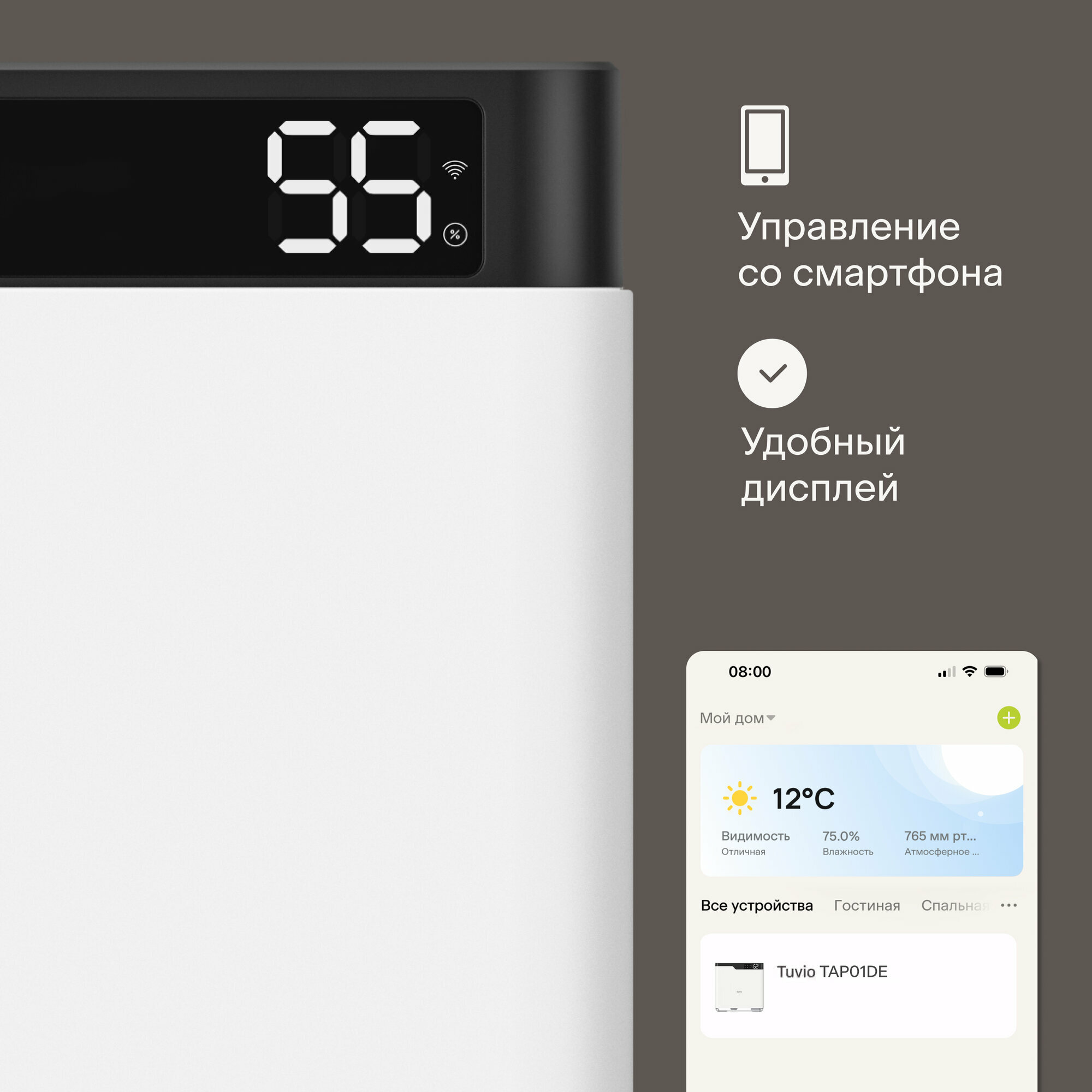 Мойка воздуха с Wi-Fi, УФ, ионизацией и Алисой, Tuvio TAP01DE, 6 литров интересное: