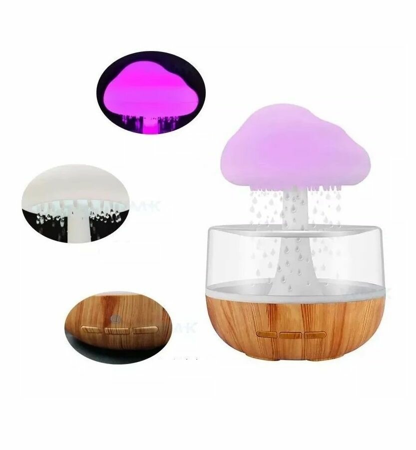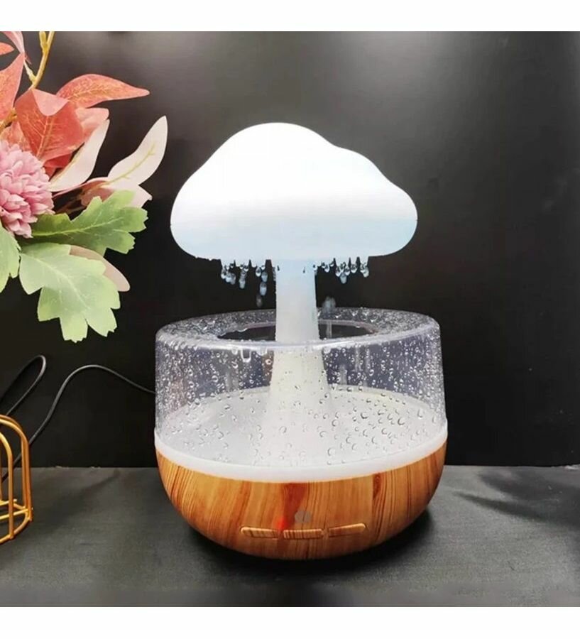 Купить Увлажнитель воздуха Гриб с эффектом дождя / Аромадиффузор ночник Облачко с подсветкой 7 цветов