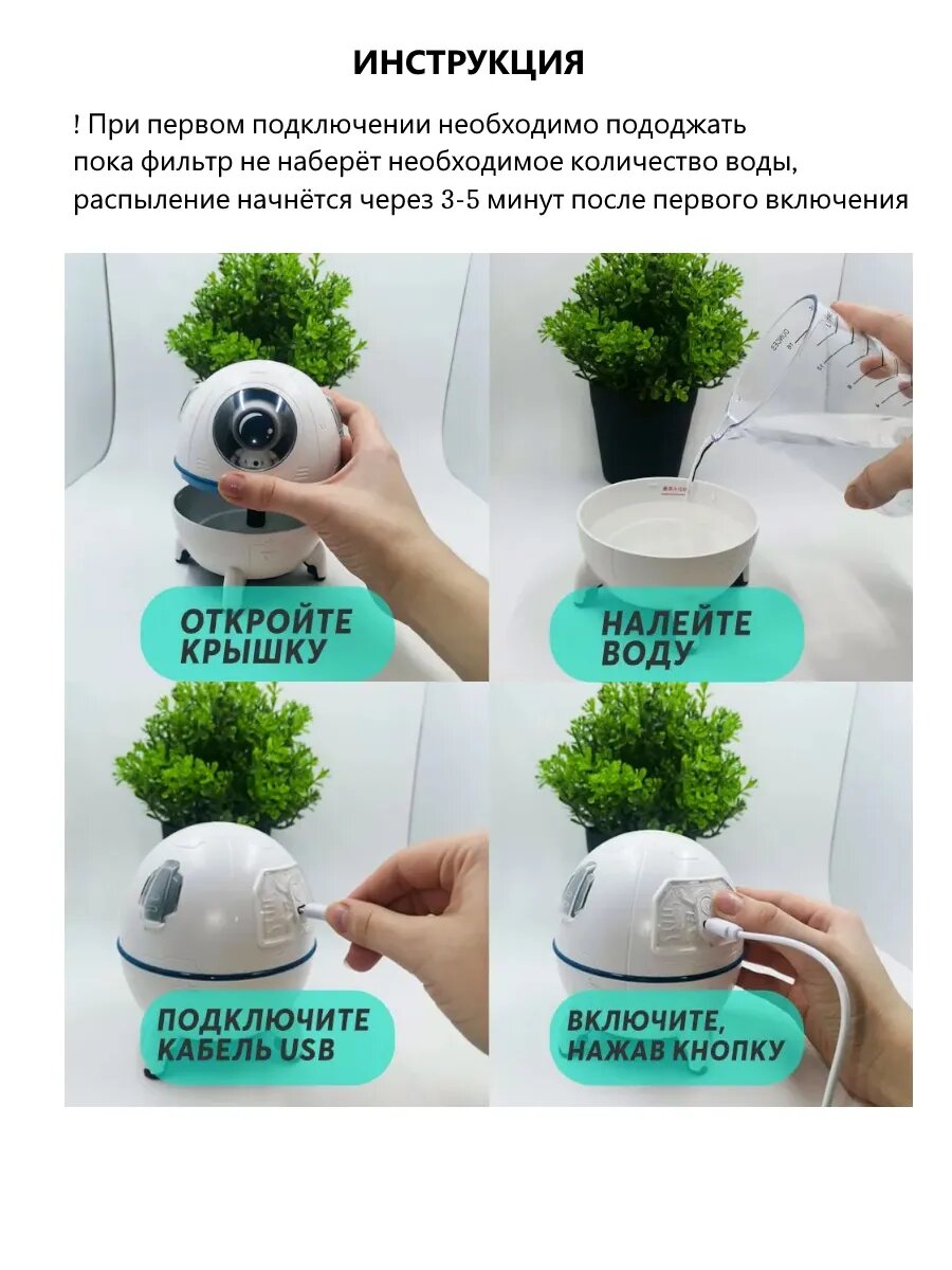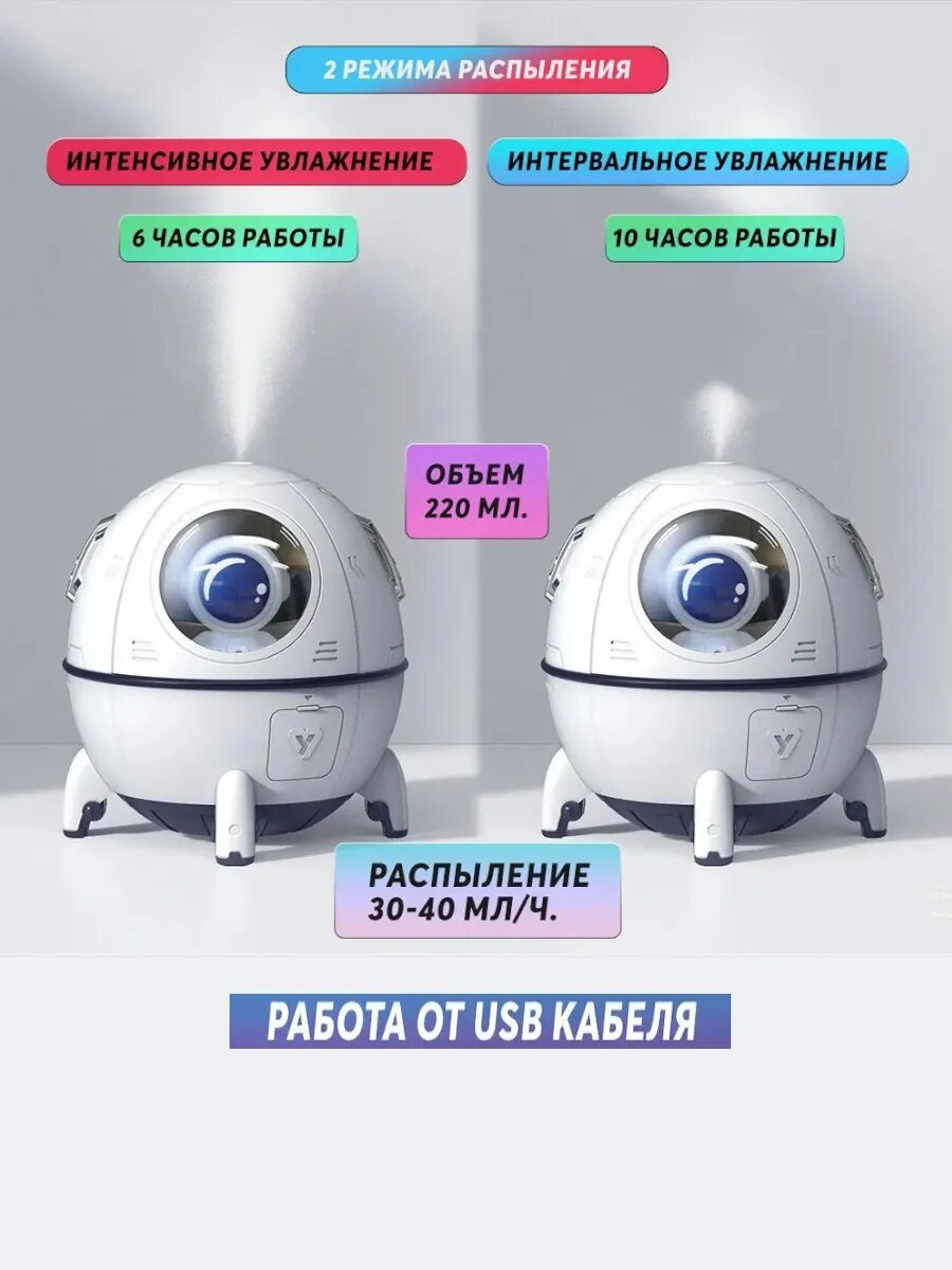 Увлажнитель воздуха "Космос", LED-подсветка, игрушка-космонавт, 2 в 1, белый интересное:
