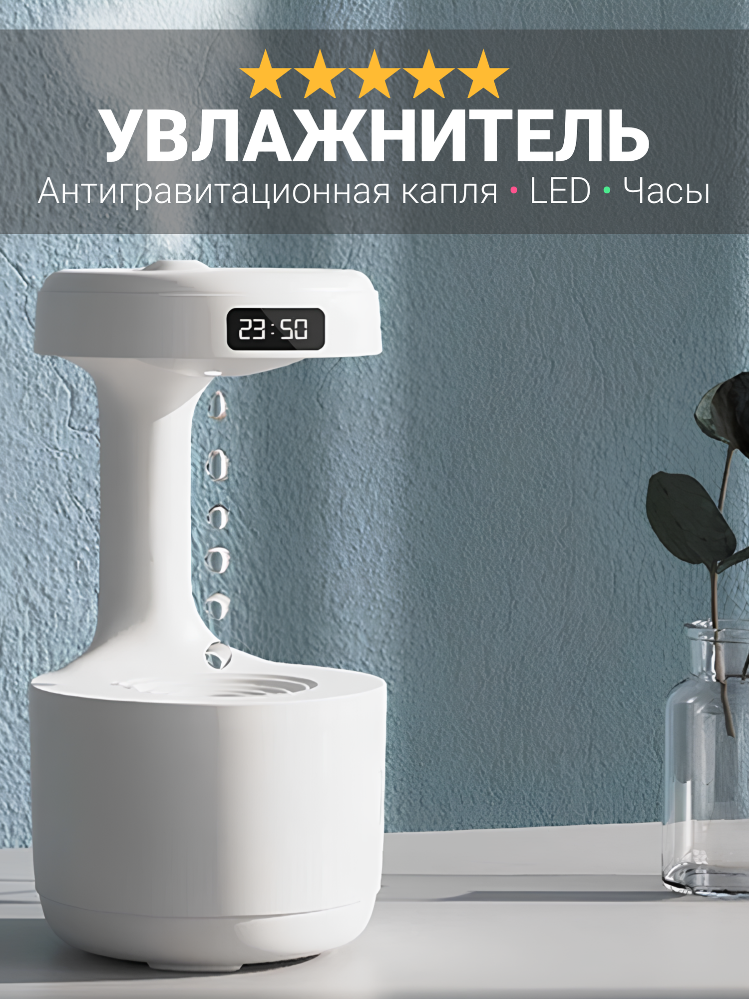 Купить Увлажнитель воздуха фонтанчик с подсветкой Gravity Rain, LED-дисплей часы улучшает климат в комнате, белый
