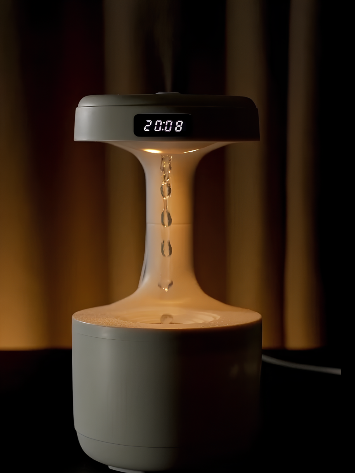 Увлажнитель воздуха фонтанчик с подсветкой Gravity Rain, LED-дисплей часы улучшает климат в комнате, белый интересное: