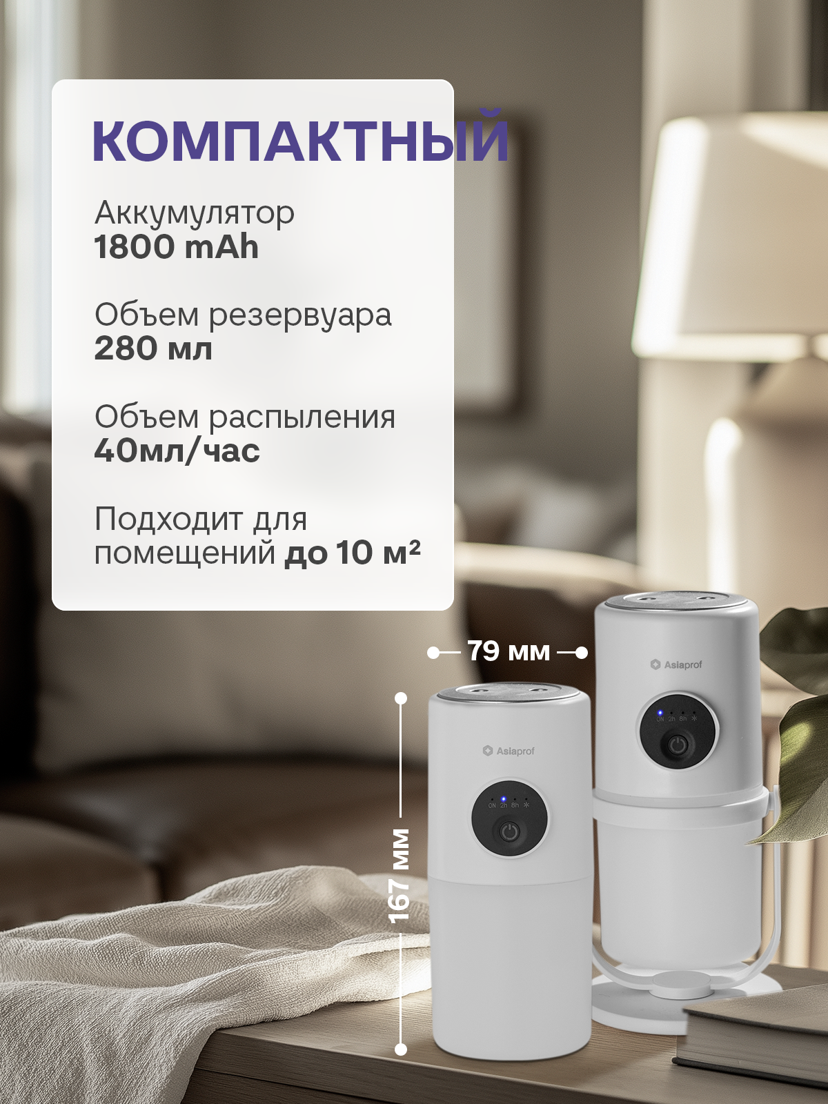 Увлажнитель воздуха ультразвуковой беспроводной, с подсветкой Asiaprof интересное:
