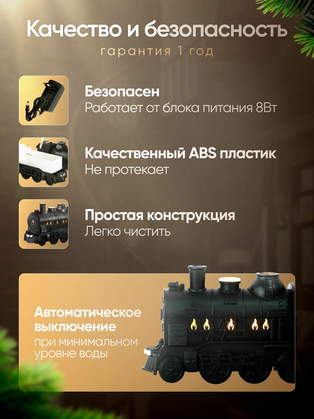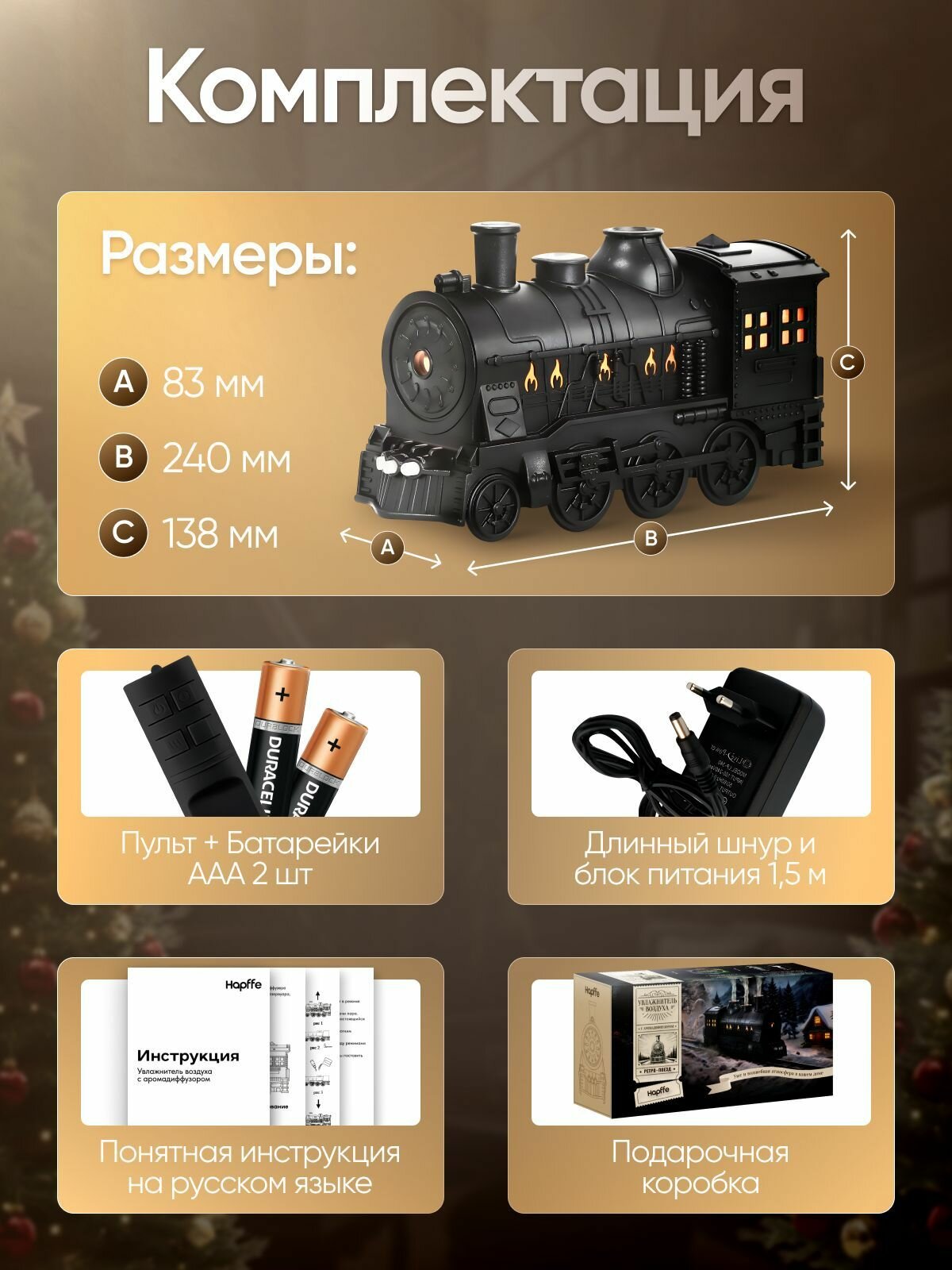 | Подробная комплектация | Увлажнитель воздуха паровоз, пульт управления, провод зарядный |
