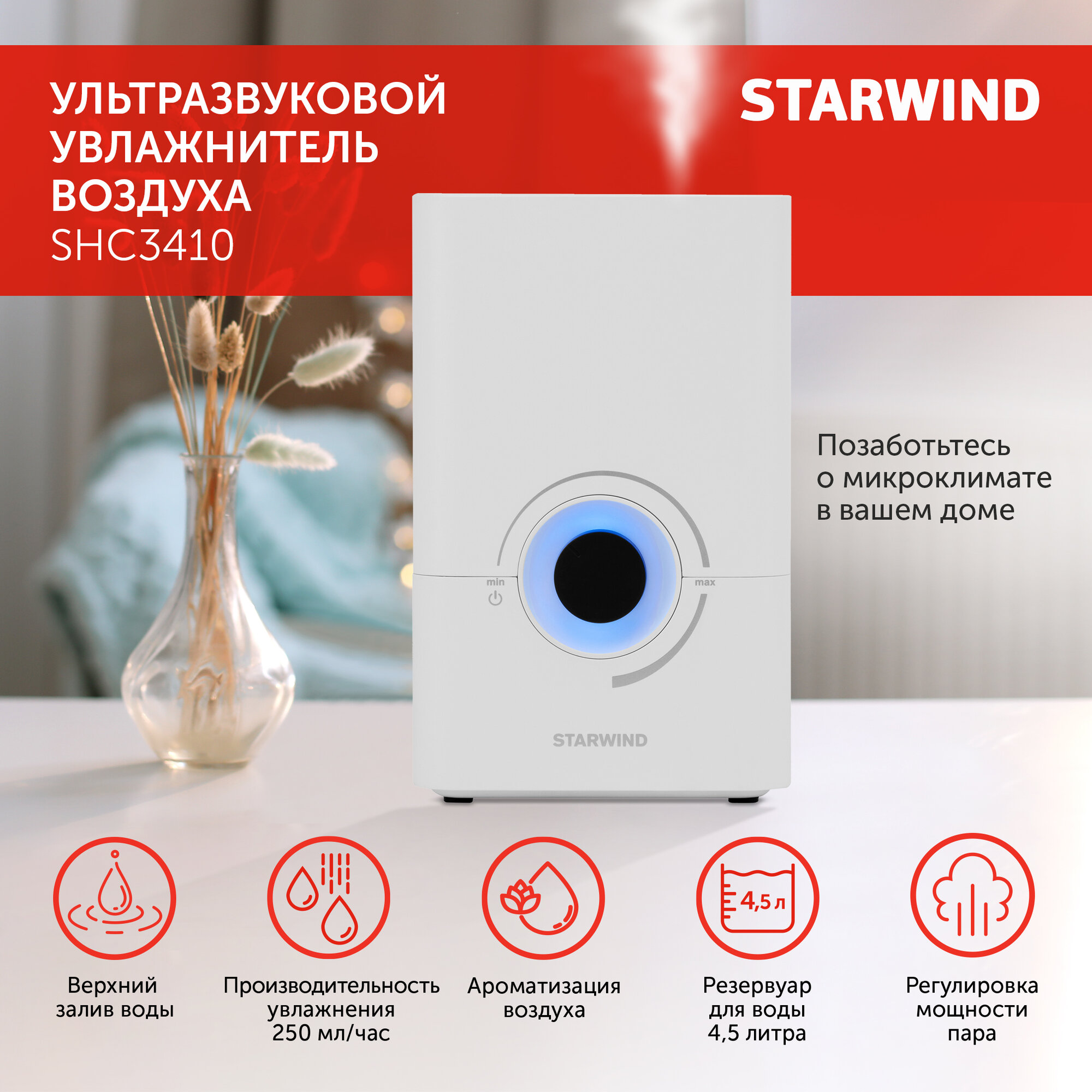 Увлажнитель воздуха Starwind SHC3410, 4.5л, 38 Дб, белый/черный интересное: