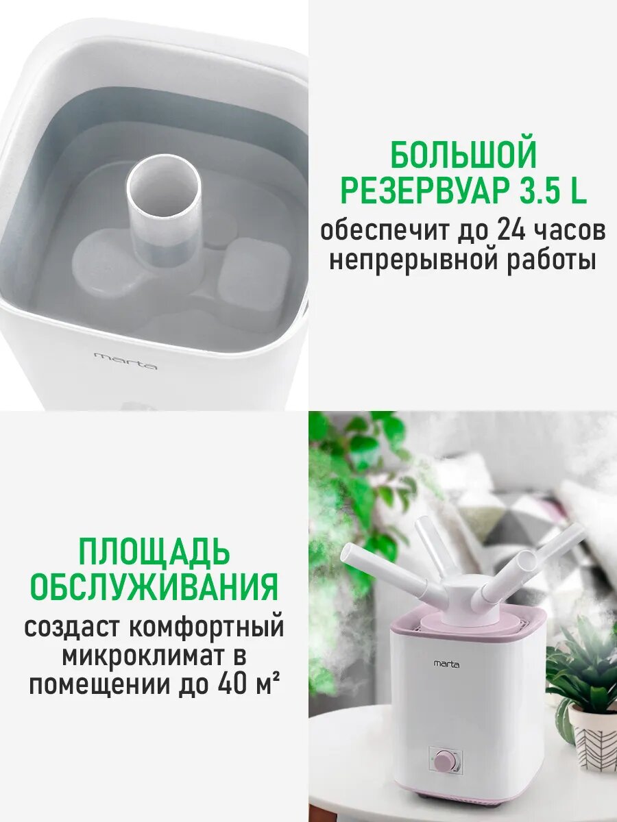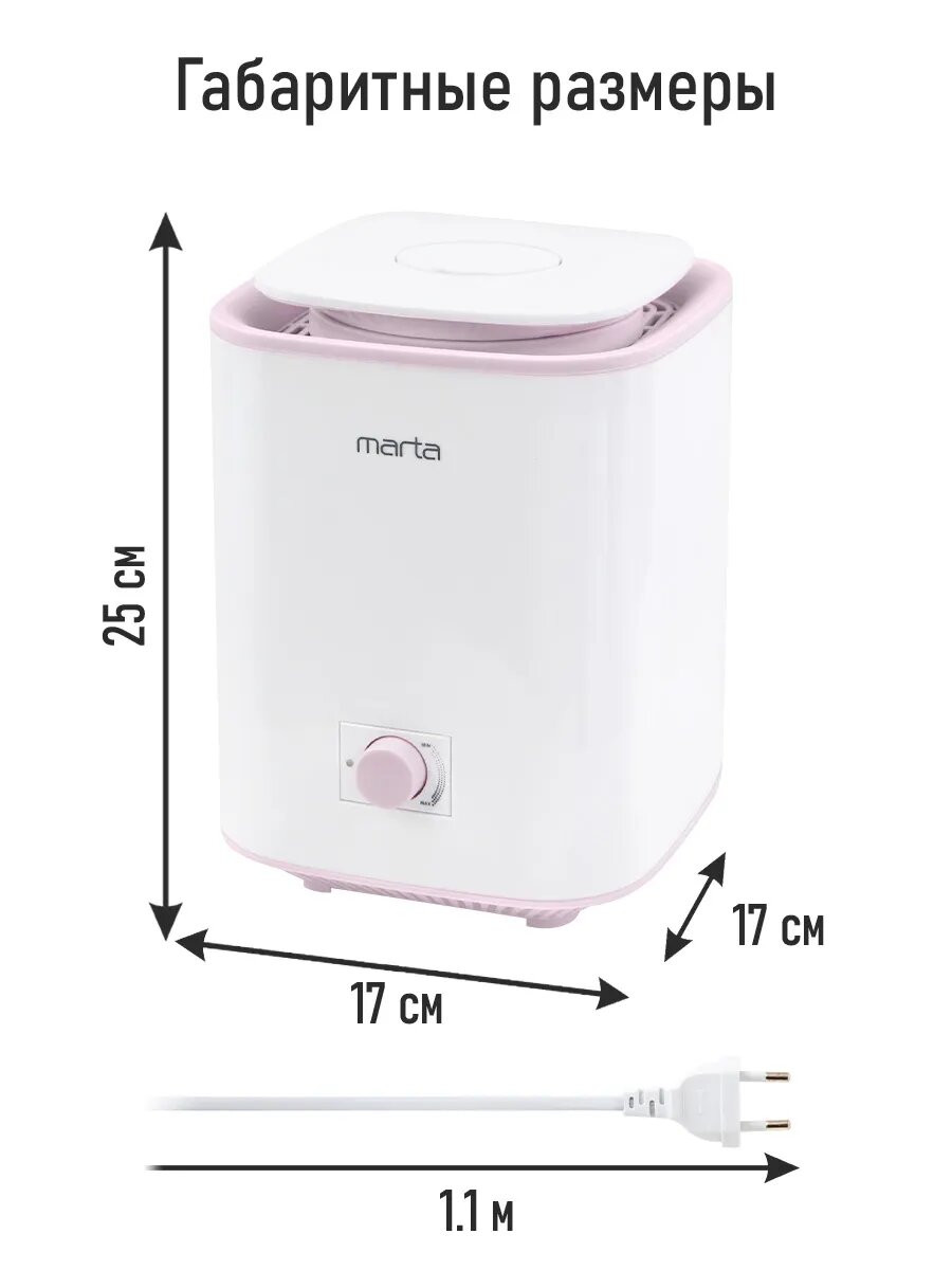 СохранитьУвлажнитель воздуха ультразвуковой MARTA MT-HF4707A верхний залив антивирусная УФ - лампа белый/розовый интересное: